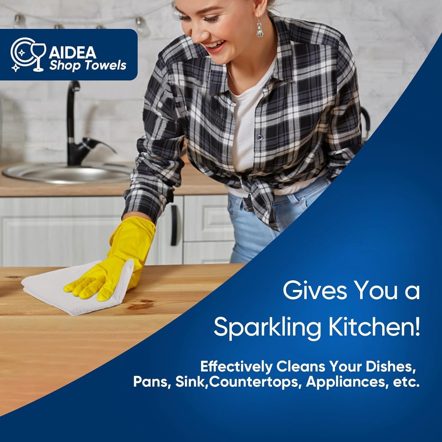 - Versatile Use: AIDEA white rags are suitable for a variety of cleaning tasks; perform effectively with just plain water; can be used in the kitchen, bathroom, for dusting, and more; an essential tool for any cleaning routine