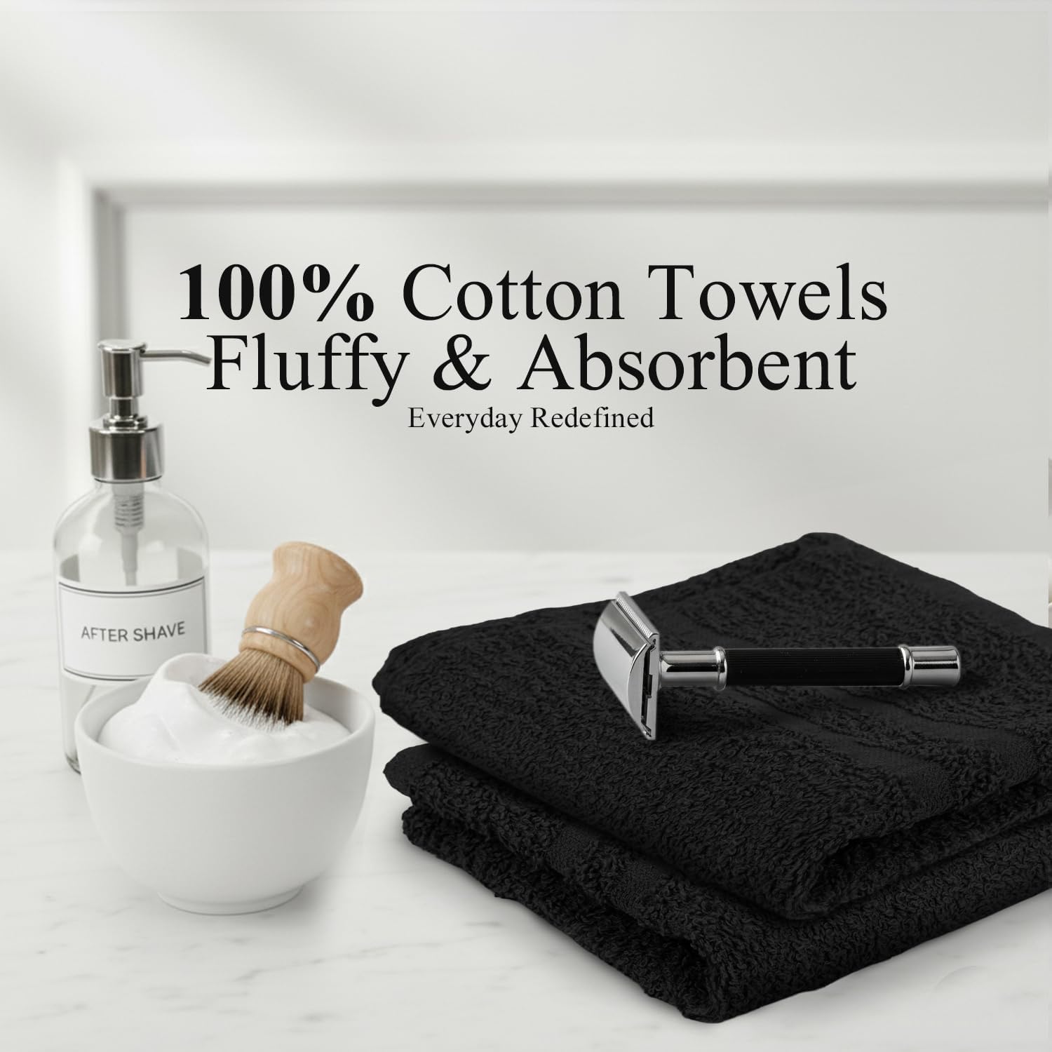 24 Pack Black Hand Towels 100% Cotton Spa Towels 16x27 inches Highly Absorbable Facial, Gym, Hair and Face Towels in Bulk