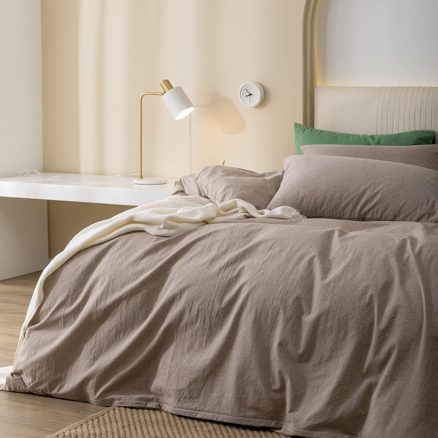 JIYUAN 100% Washed Cotton Duvet Cover Set Comfy Simple Style Soft Breathable Textured Durable Linen Feel Bedding for All Seasons Queen, Taupey