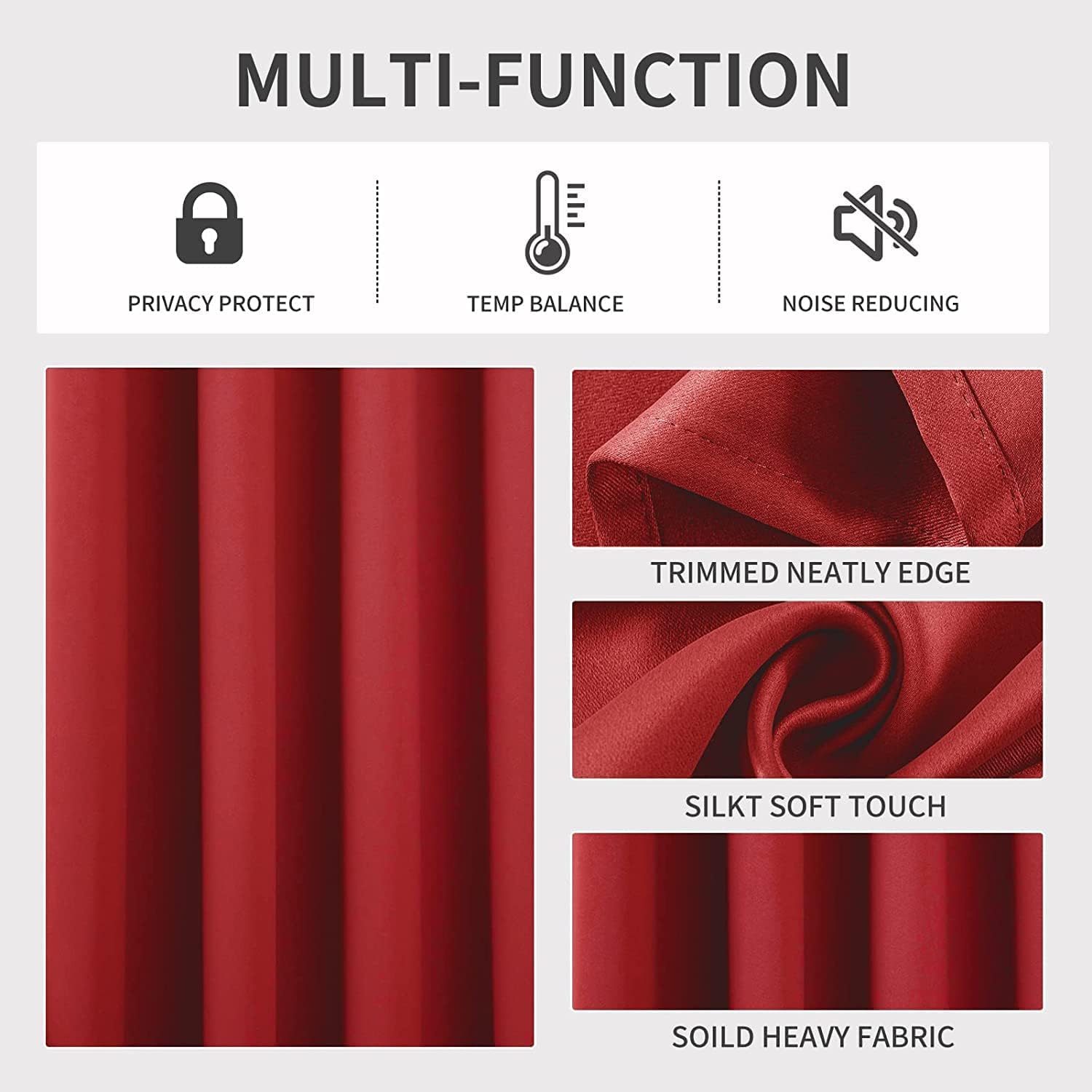 Joydeco Blackout Curtains 108 Inch Length 2 Panels Set, Thermal Insulated Long Curtains& Drapes 2 Burg, Room Darkening Grommet Drapes for Living Room Bedroom Window (W52 x L108 Inch, Red)