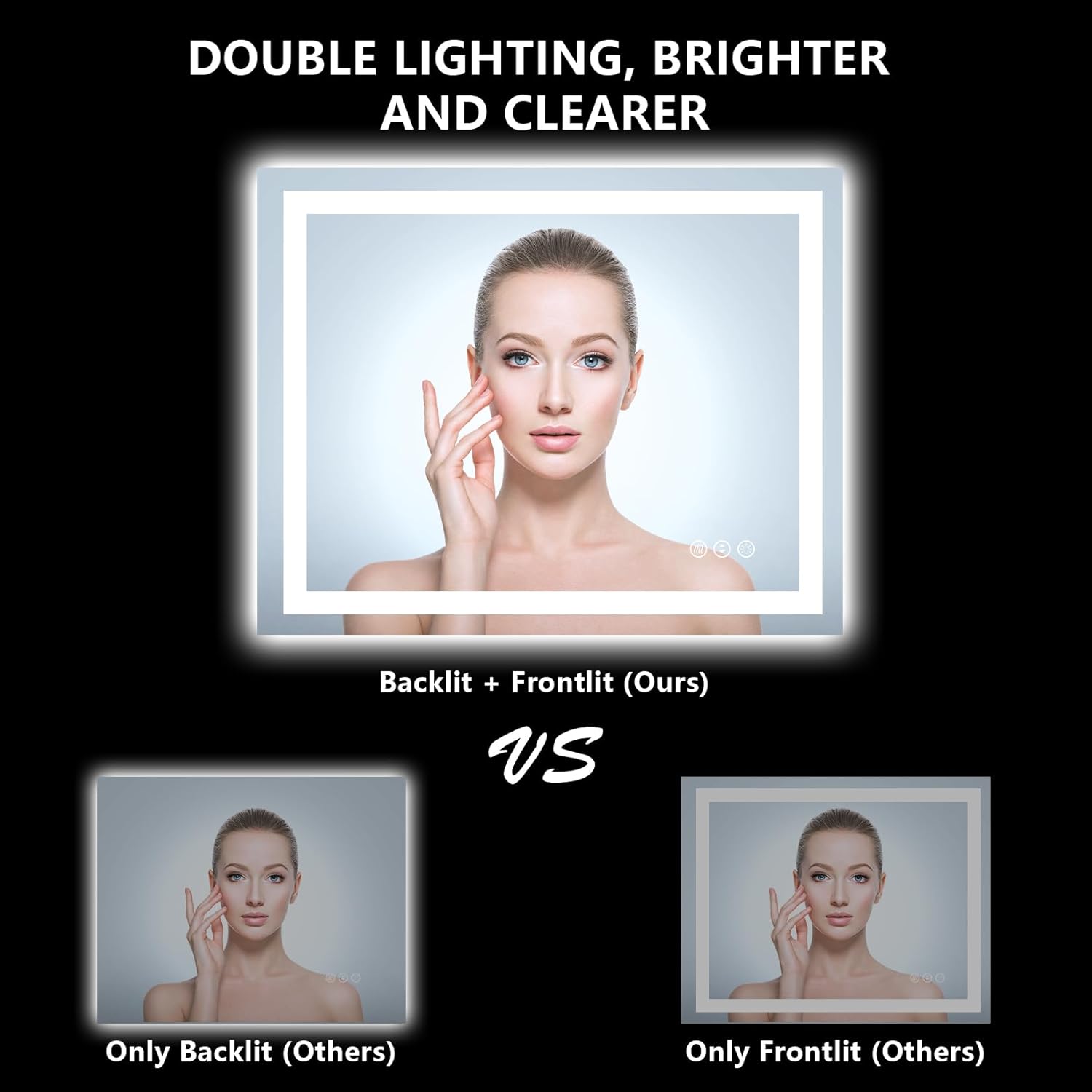 - 🔆【Backlit+Front-lit, Brighter and Clearer】- Yeelait LED Mirror for Bathroom is designed with a combination of front-lit mirror and backlit mirror, simultaneously emits front lighting and side ambient lighting, which is twice or more brighter than ordinary lighted bathroom mirror. Our LED bathroom mirror are bright enough for makeup, shaving or beauty care. No dark, no shadow, supper clear. The modern look and design is perfect for your bathroom remodels and upgrades.