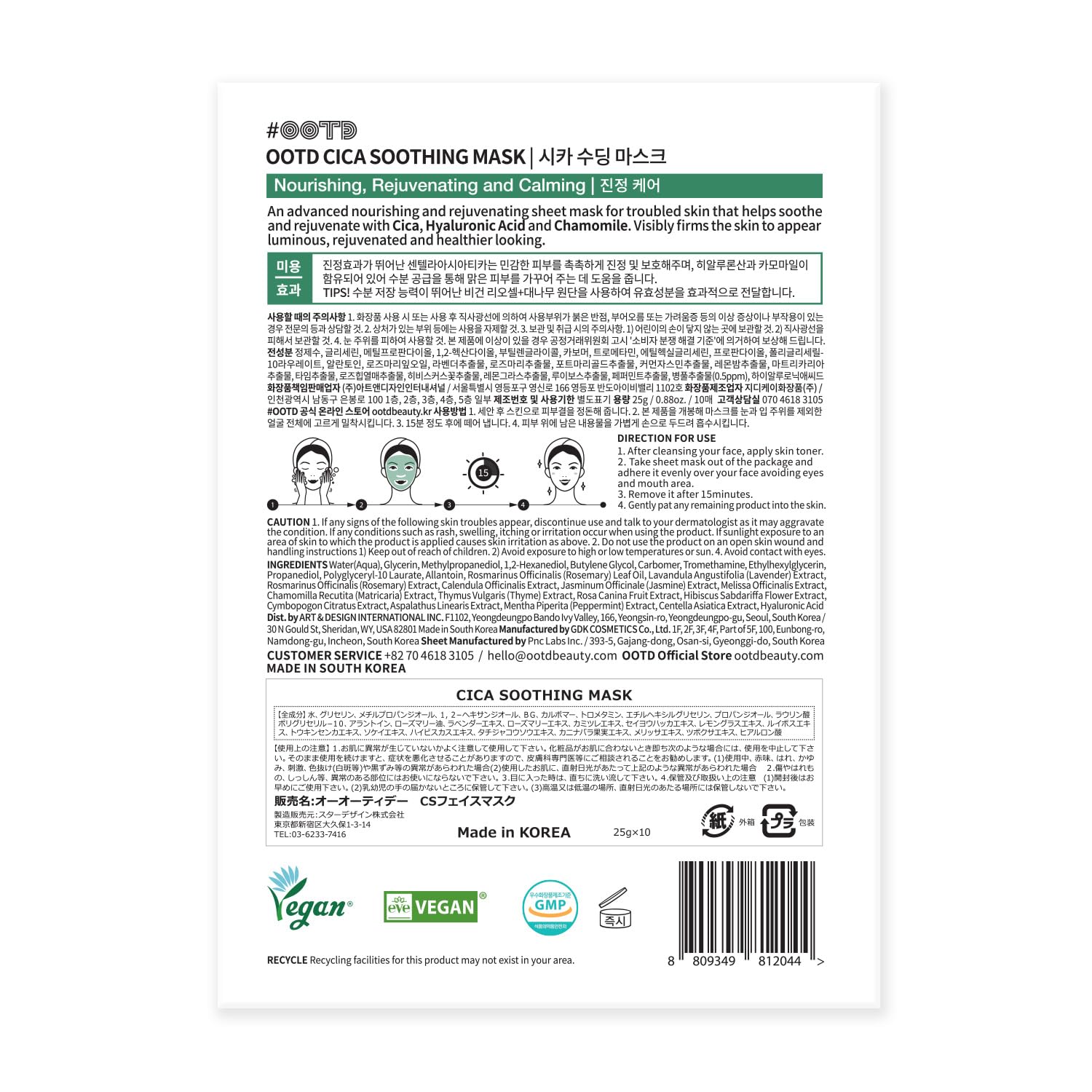 #OOTD Cica Calming Mask for Face Sensitive Irritated Skin, Soothing, Moisturizing, Korean Anti Aging Face Mask, Eve Vegan, Chamomile, Hyaluronic Acid 10EA