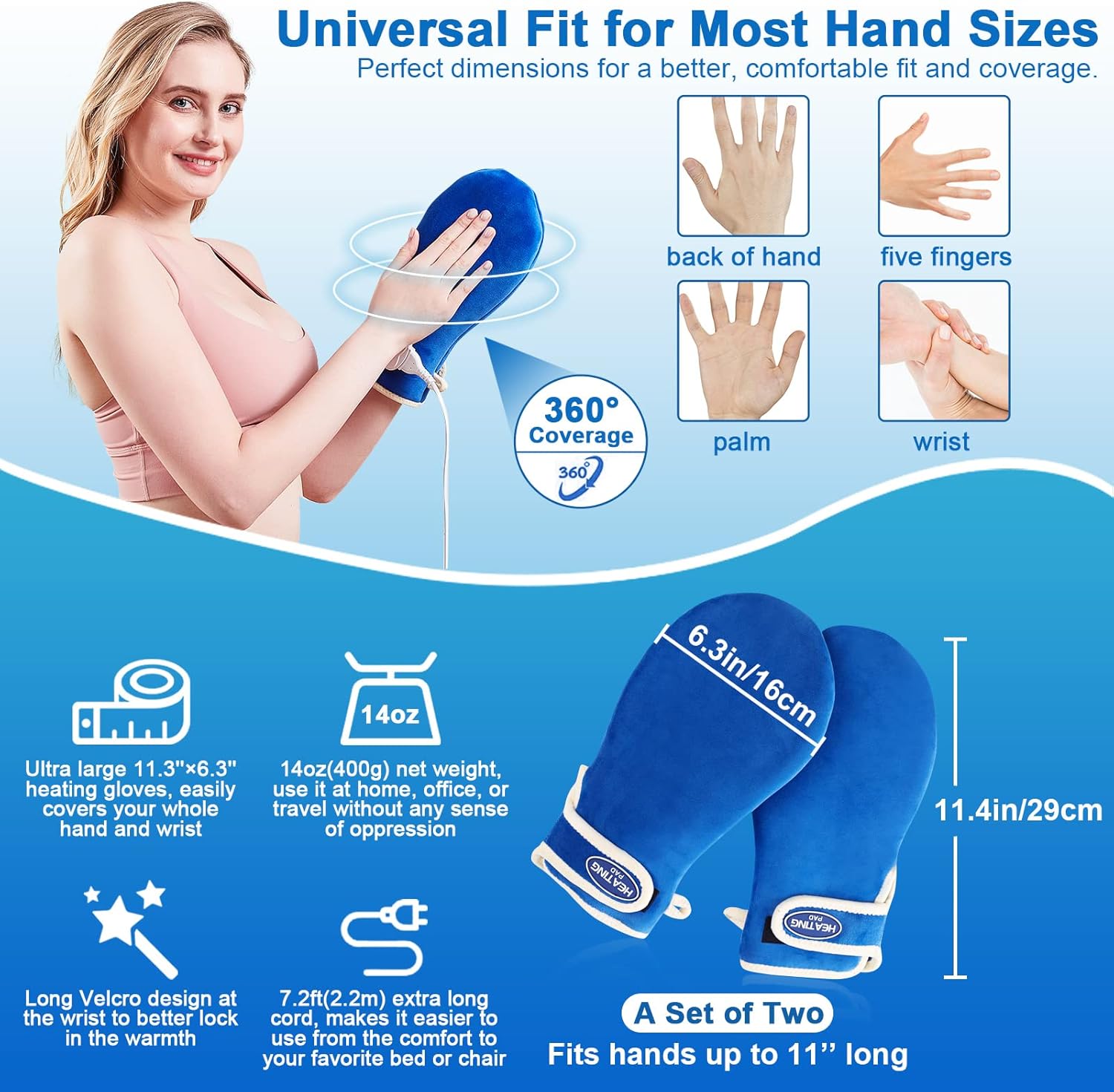JOBYNA Heating Pad for Hands & Wrists, 2 PCS Hand Heated Mittens for Carpal Tunnel Relief, Arthritis Hands, Trigger Finger, Heated Gloves with 30/60/90min Timer, 86-158℉ Adjustable Temperature