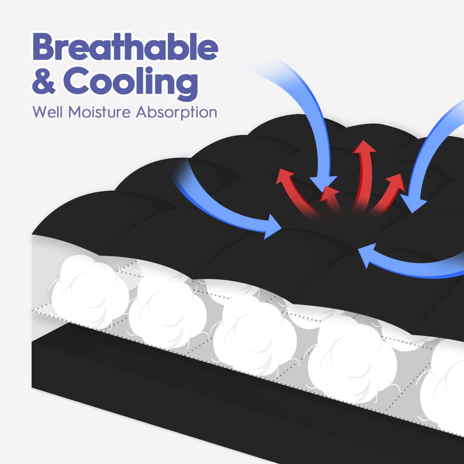 ABENE Mattress Topper Twin for Back Pain Relief, Extra Thick Mattress Pad Pillowtop, Soft Mattress Protector Cover with 8"-21" Deep Pocket, Overfilled Down Alternative Filling (Black, Twin)