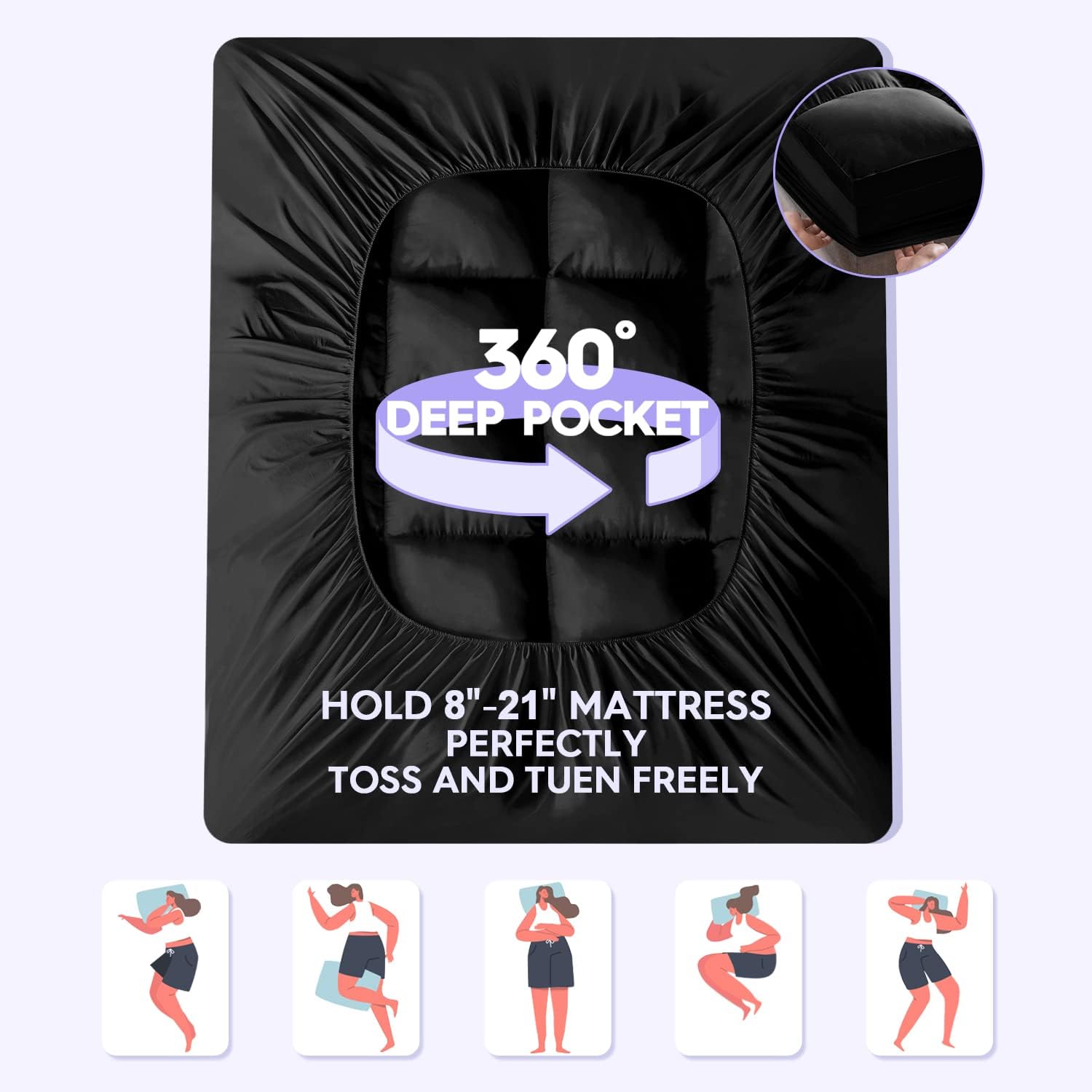 - 【Deep Pocket & Box Quilted】: 360° all-around wrapping design, high elastic pocket protects the mattress in all directions, flat and compliant, and will not shift when you roll. The extended bed skirt design is suitable for 8-21" mattresses, with broad applicability to meet various needs. Box quilting fixed-point process of fixed filling and the surface forms a 3D structure, to ensure the filling is more even, plump, and supportive. It is not easy to deform after long-term use