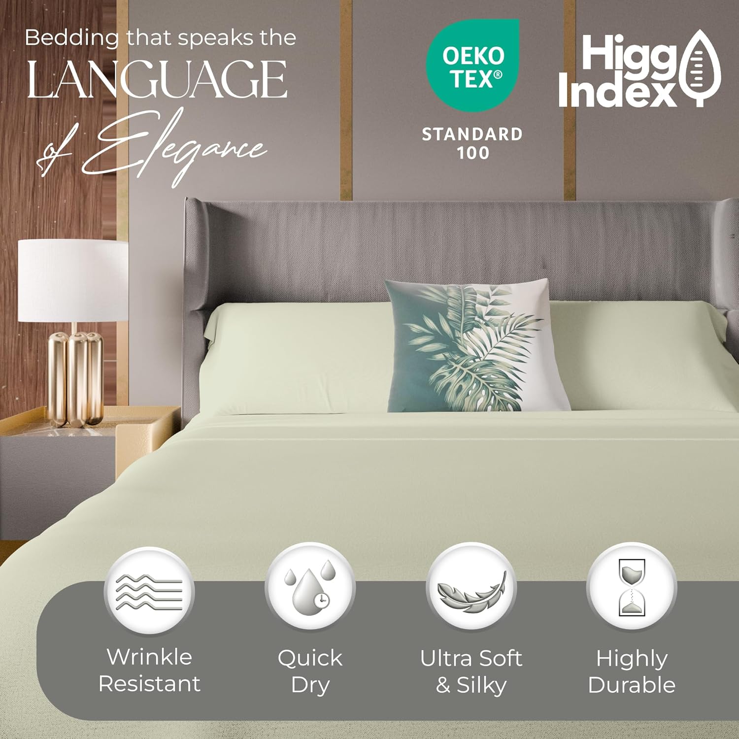 1200 Thread Count Cotton Rich Full Oatmeal Sheets Set, Ultra Soft & Silky Luxury Sateen Bed Sheets, Moisture Wicking & Wrinkle Resistant (1 Flat Sheet, 1 Fitted Sheet & 2 Pillowcases)