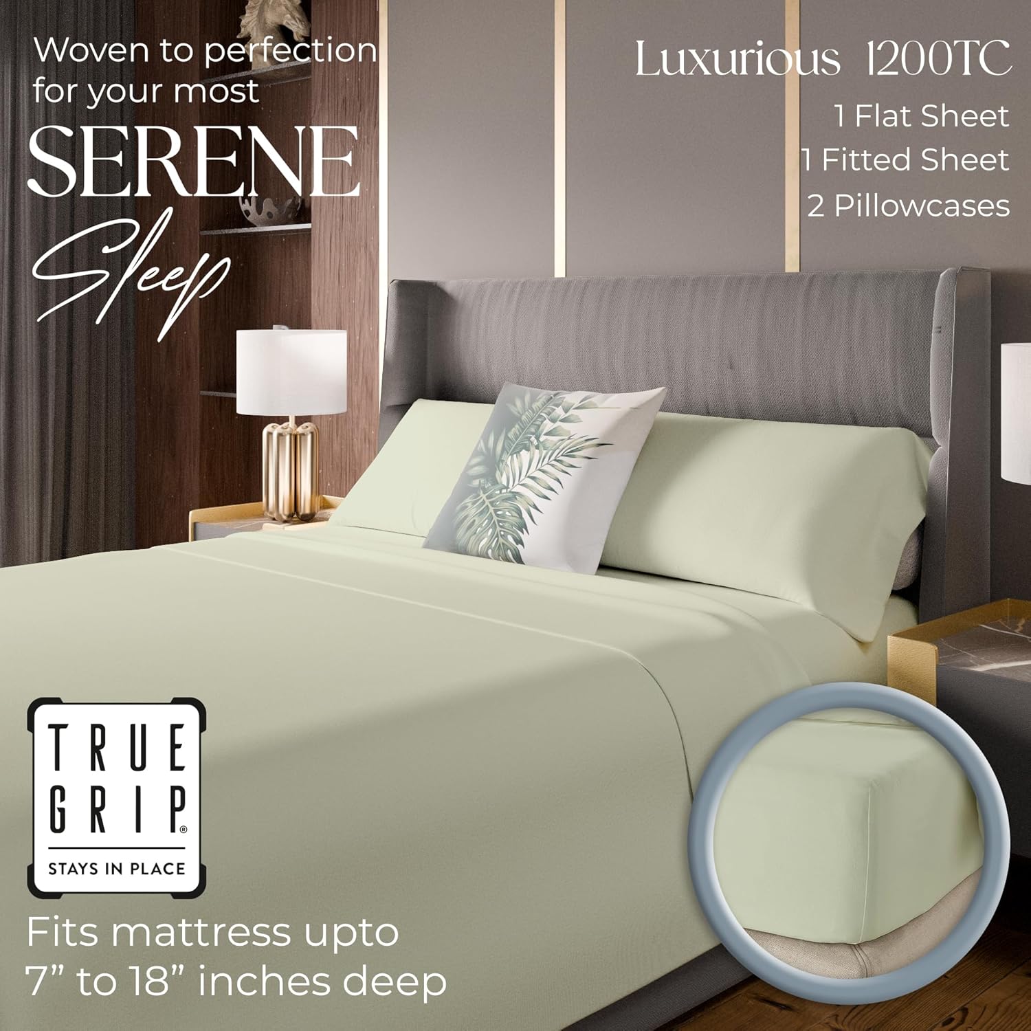- Experience the Elegance: Made using a cotton-rich blend, our 1200-thread count sheet set is smooth as silk and soft as snow. Also, the sateen weave creates a glorious sheen to elevate the look and feel of any dรฉcor.