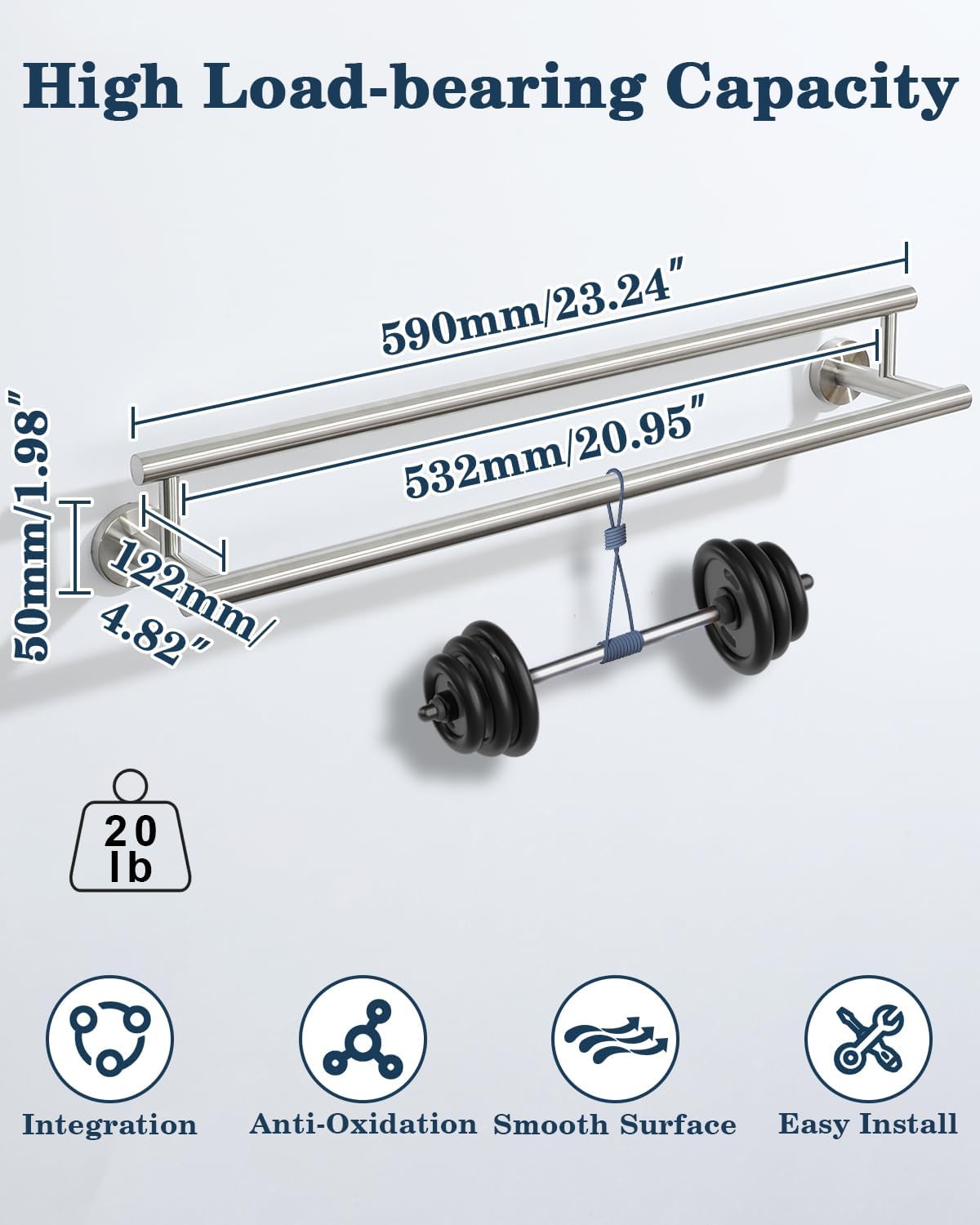 Alise Double Bath Towel Bars,24 Inch Towel Racks for Bathroom Wall Mounted,SUS304 Stainless Steel Towel Holder,Space-Saving Towel Hanger,Modern Decor Towel Rod,Brushed Nickel Towel Rail,GYT6902-LS