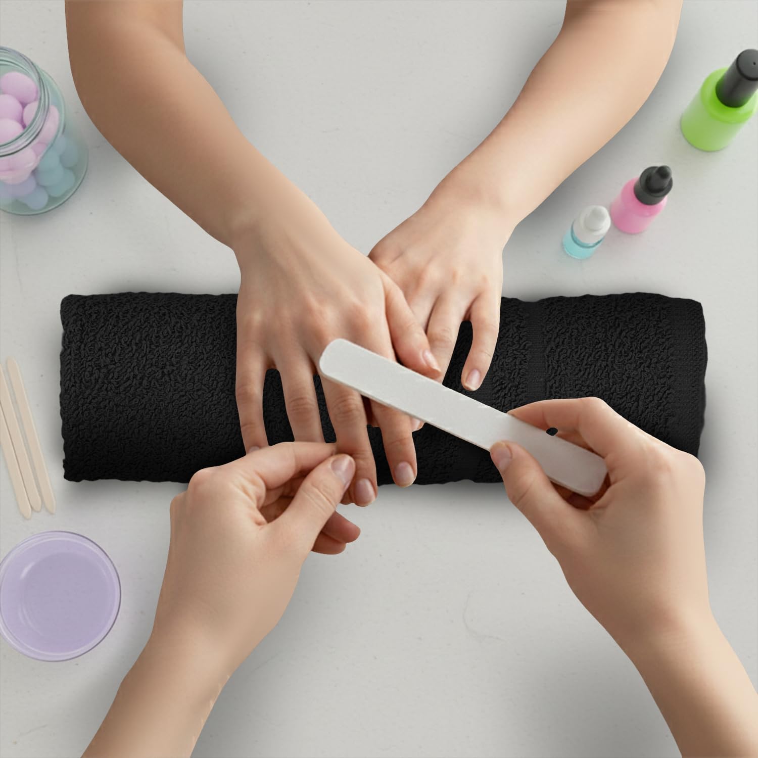 24 Pack Black Hand Towels 100% Cotton Spa Towels – 16x27 inches Highly Absorbable Facial, Gym, Hair, Face, Bulk Small Towels (Not Bleach Proof)