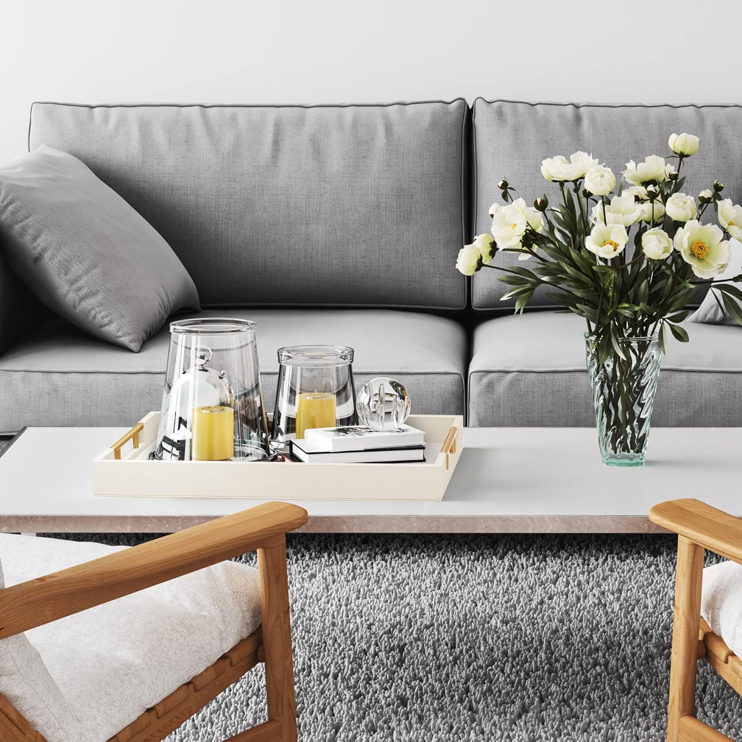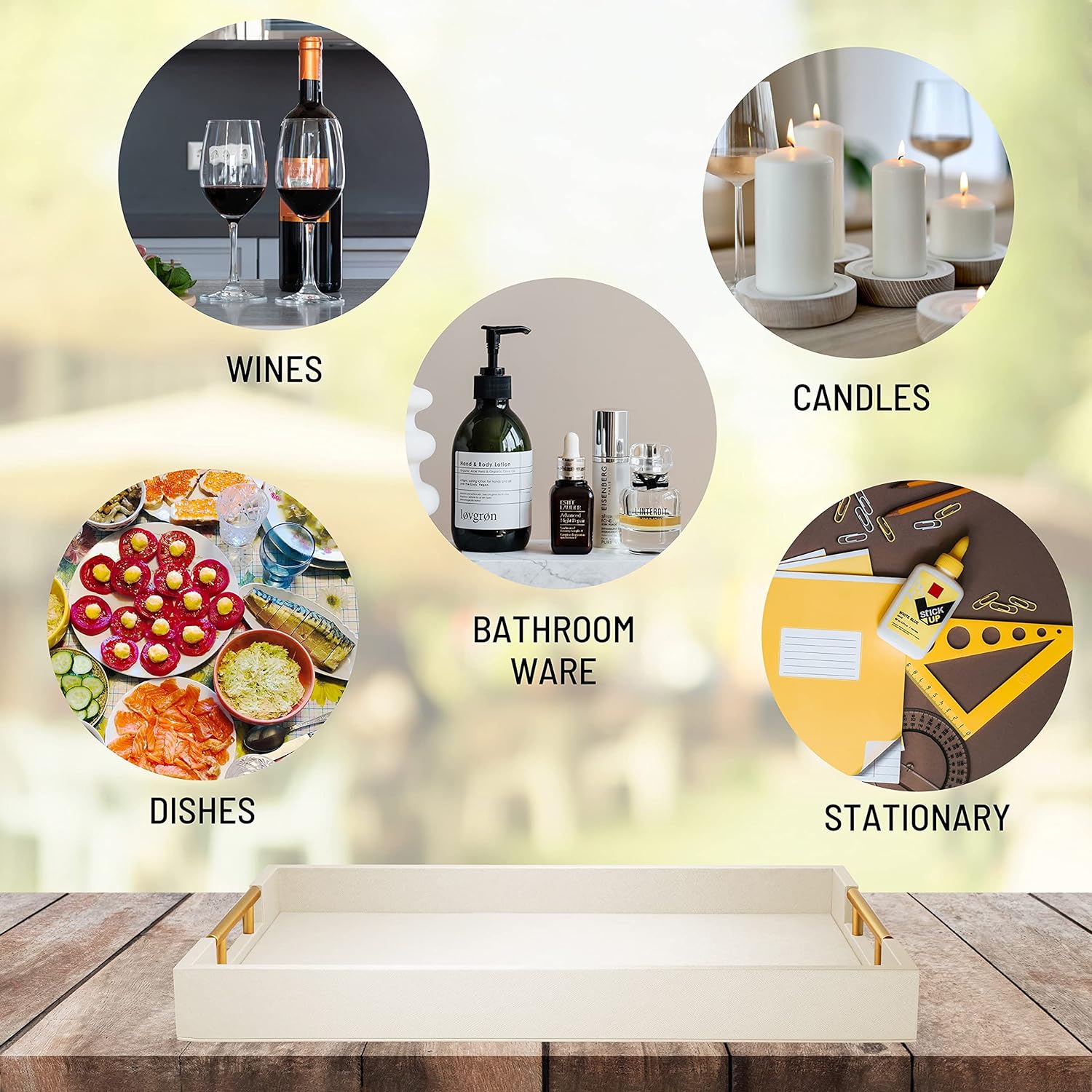 - ELEGANT AND STYLISH: Gorgeous pearlescent cross-grain leather with exquisite polished gold handles brings this unparalleled looking luxury tray. The maximum suitable for all decoration styles of home or commercial premises. You can keep it in your living room, nursery, kitchen, bedroom, bathroom.