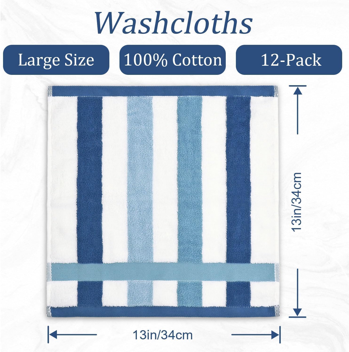 - Large Wash Cloths for Multipurpose: 13 x 13 inches wash towels 12 pack suitable for bathroom, gym, resort, guest room, spa, kitchen, travel, and more