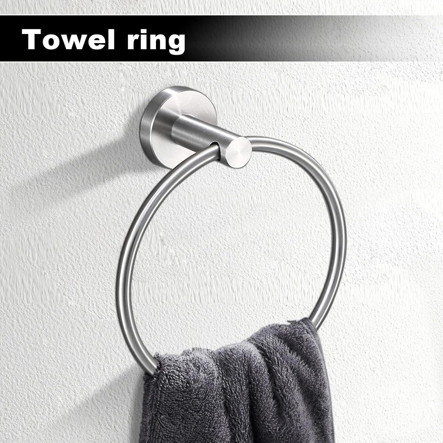 - 【Quality Bath Towel Rack Set】Bathroom accessories set adopt quality thickened SUS 304 waterproof stainless material, and with 4 layers protection coating in surface which can avoid scratches and rust, can hold more than 25lb and would not to peel or chip, safer and druable.