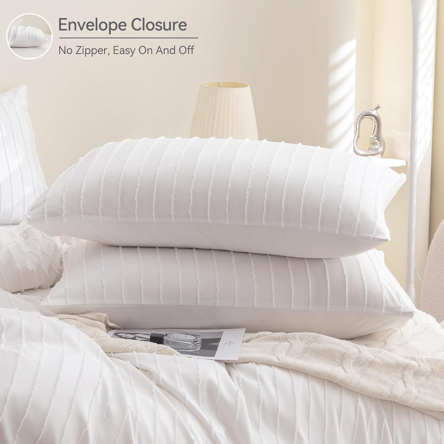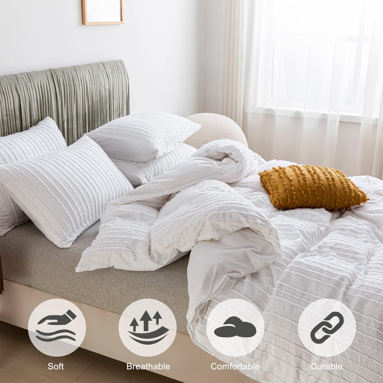 JELLYMONI Duvet Cover King Size Bright White - 3PCS Boho Striped Duvet Cover Set Polyester Tufted Bohemian Textured Comforter Cover 104×90in with Corner Ties & Zipper and 2 Pillowcases