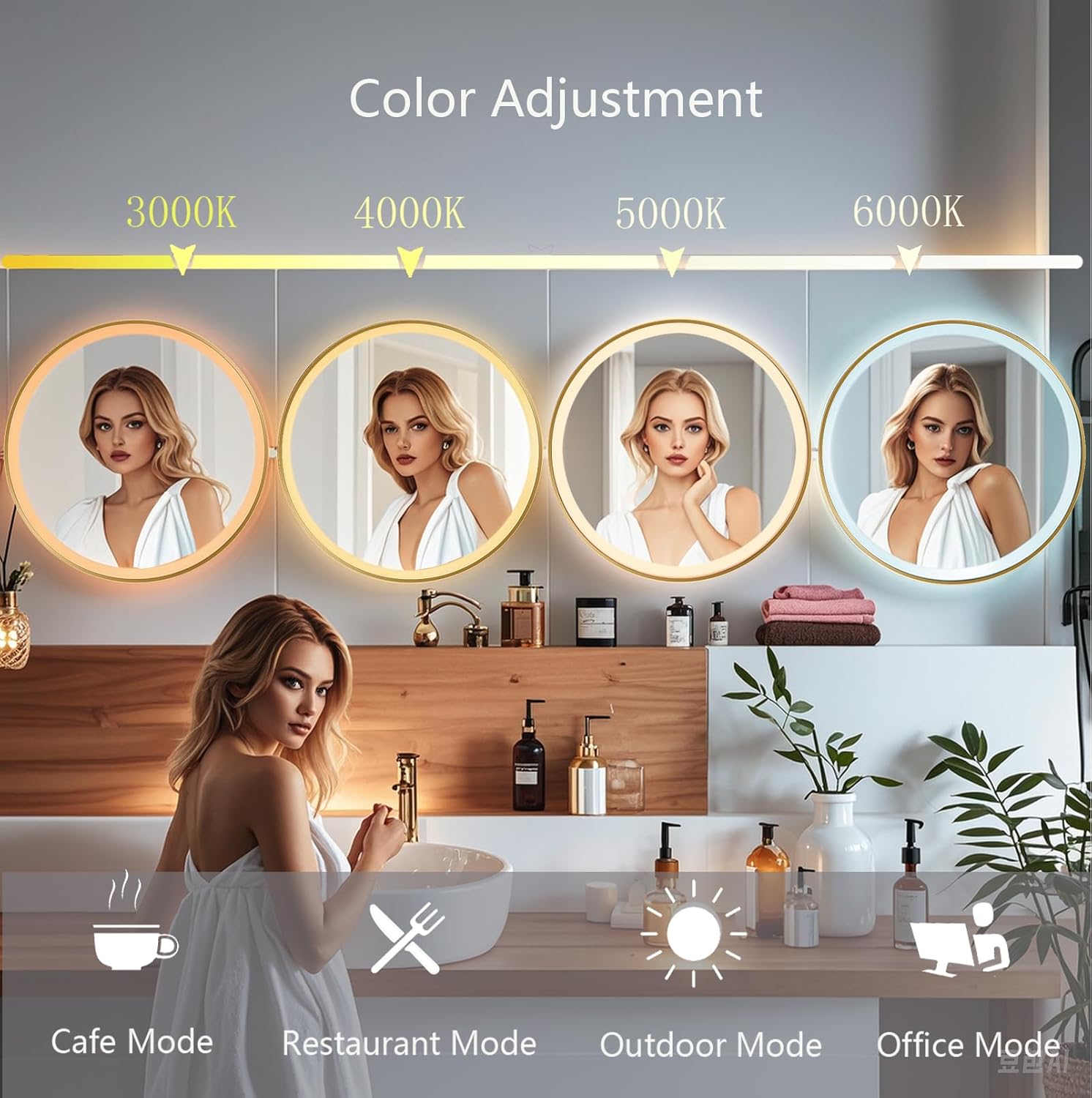 - ✨【Adjustable Led Lights】Our LED mirror is designed to enhance your makeup experience with its natural-like lighting that features 3000/4000/5000/6000K LED lights. A simple touch of the switch allows you to turn on the lights and adjust the color temperature, providing versatile lighting for all your beauty needs. This bright and even lighting eliminates shadows on your face during makeup application, shaving, and other grooming tasks, ensuring that you can achieve the perfect look every time.