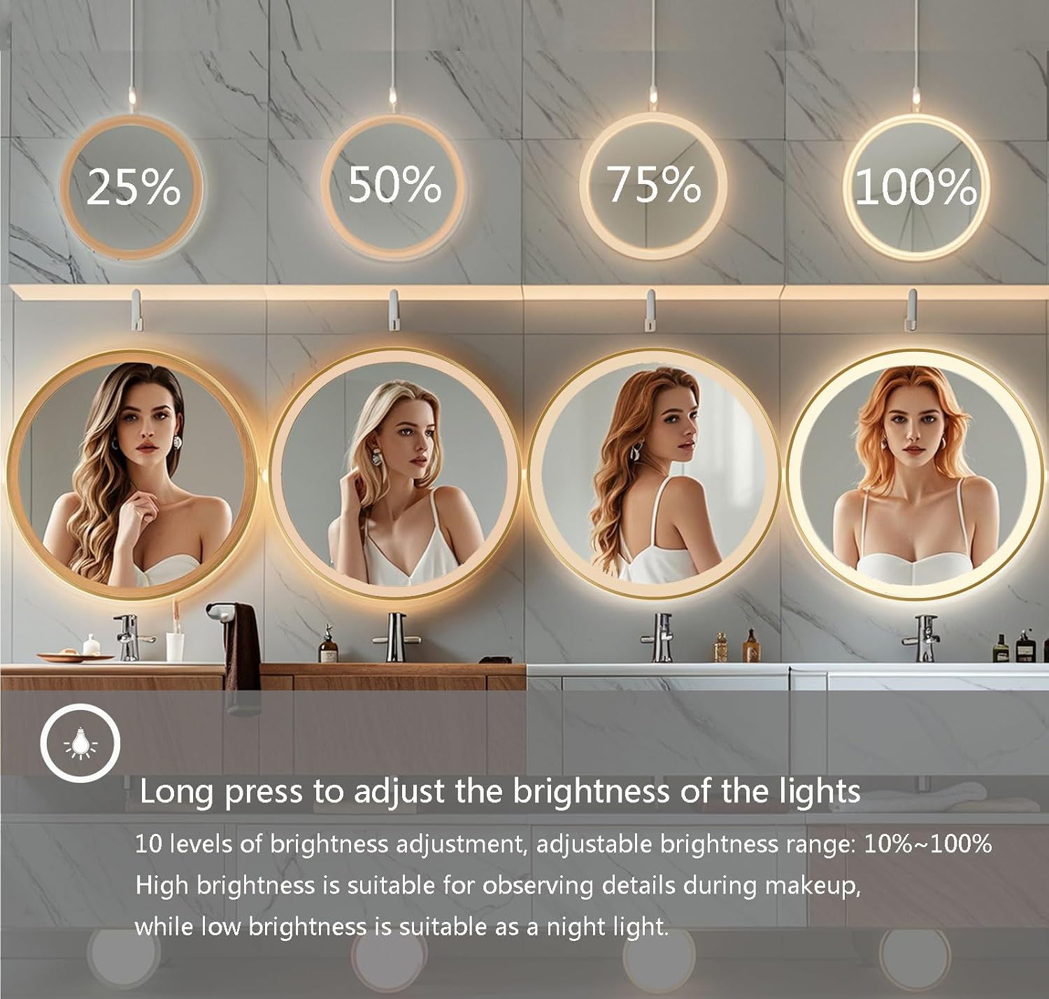 - ✨【Anti-Fog Benefits】LED lighted mirrors have an anti-fog system that prevents fogging, with a touch switch on the mirror that can automatically activate the anti-fog function when you turn on the power button. This feature allows you to use the mirror instantly after hot baths or showers, eliminating the need to wipe down or wait for defogging.