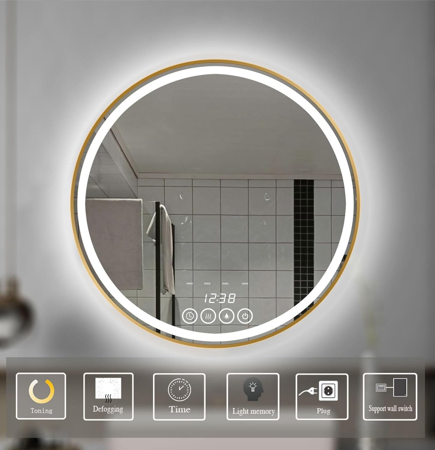 - ✨【Gold Frame & Digital clock】Our lighted mirrors are the ideal addition to any bathroom, featuring a sleek exterior design and energy-saving LED interior that creates a modern and simple aesthetic that can suit both residential and commercial spaces. This mirror is perfect for adding the final touches to your vanity and includes a 12-hour time display designed specifically for LED vanity mirrors, providing convenience for those who are always running late.