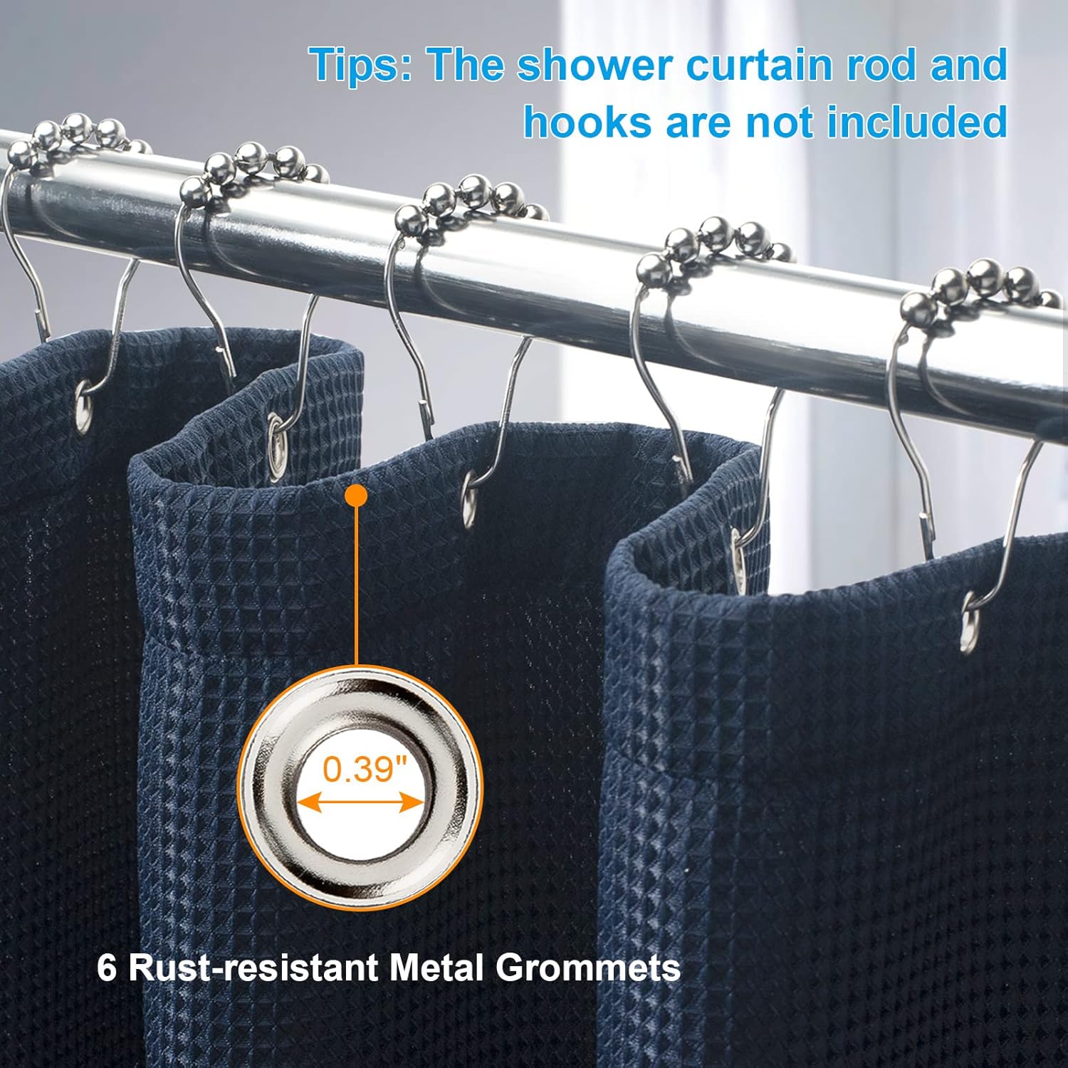 - Easy installation - Each waffle shower curtain has 6 rust-resistant metal grommets which fit most curtain hooks. The 36x72 Inches navy blue shower curtain fits most standard-sized bathtubs and showers.