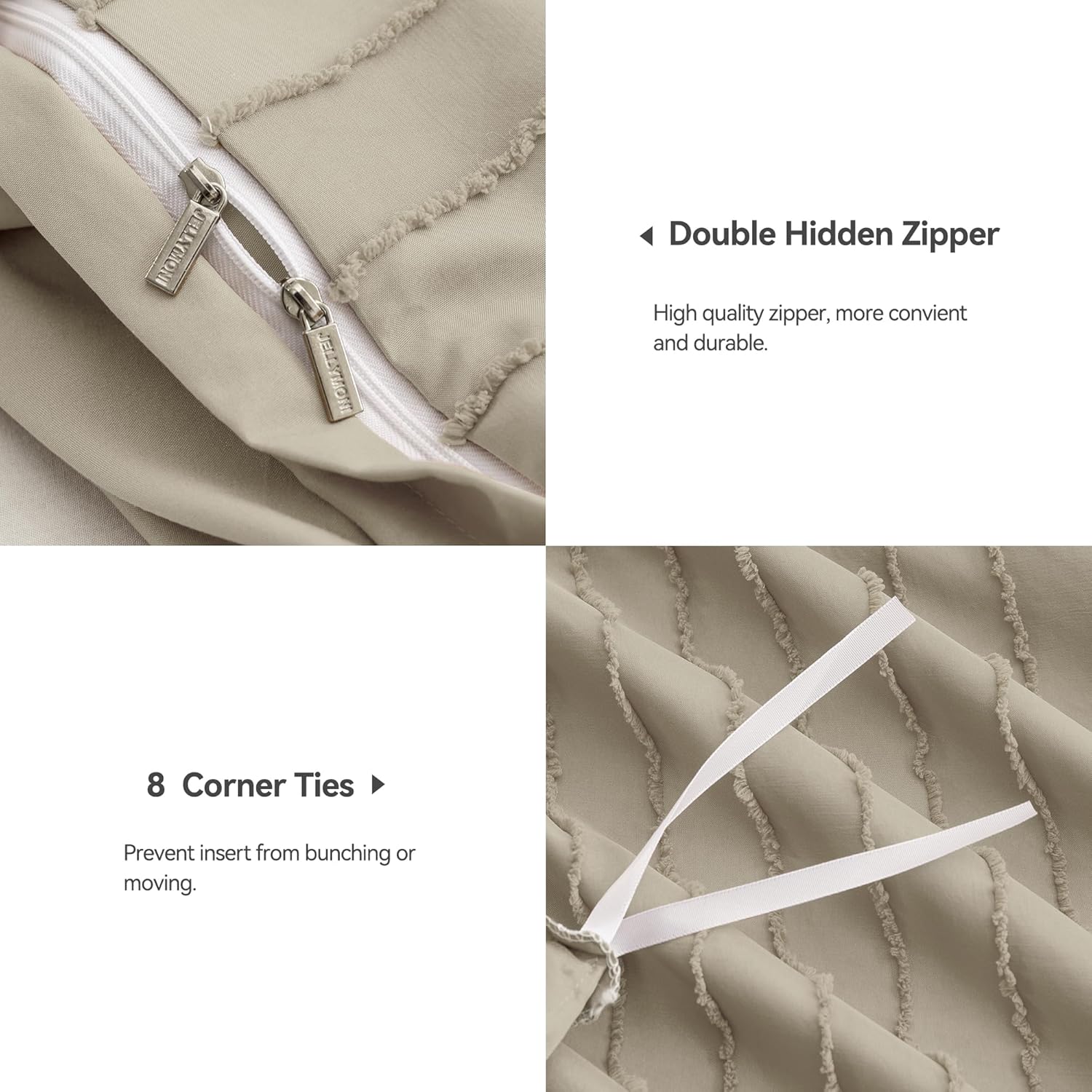 JELLYMONI Duvet Cover Twin Size Khaki - 3PCS Boho Striped Duvet Cover Set Polyester Tufted Bohemian Textured Comforter Cover 68×90in with Corner Ties & Zipper and 2 Pillowcases