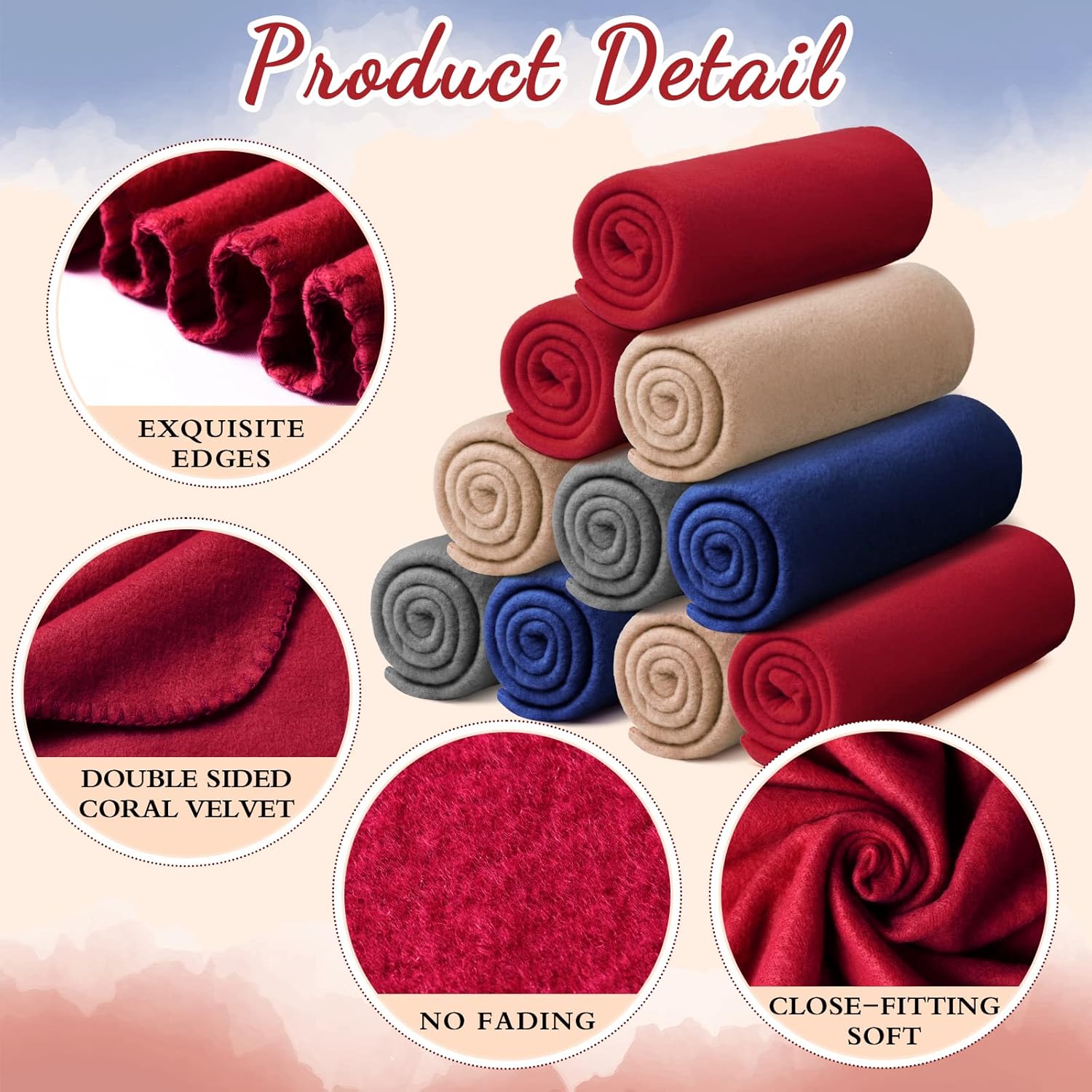 - Package Included: you will receive totally 24 packs fleece throw blanket in 4 different colors, 6 packs per colors, each size is 50 x 60 inches, our fleece blankets are made with lightweight polyester, sufficient quantity and colors can support your daily use and replacement needs, you can also share with your friends and family