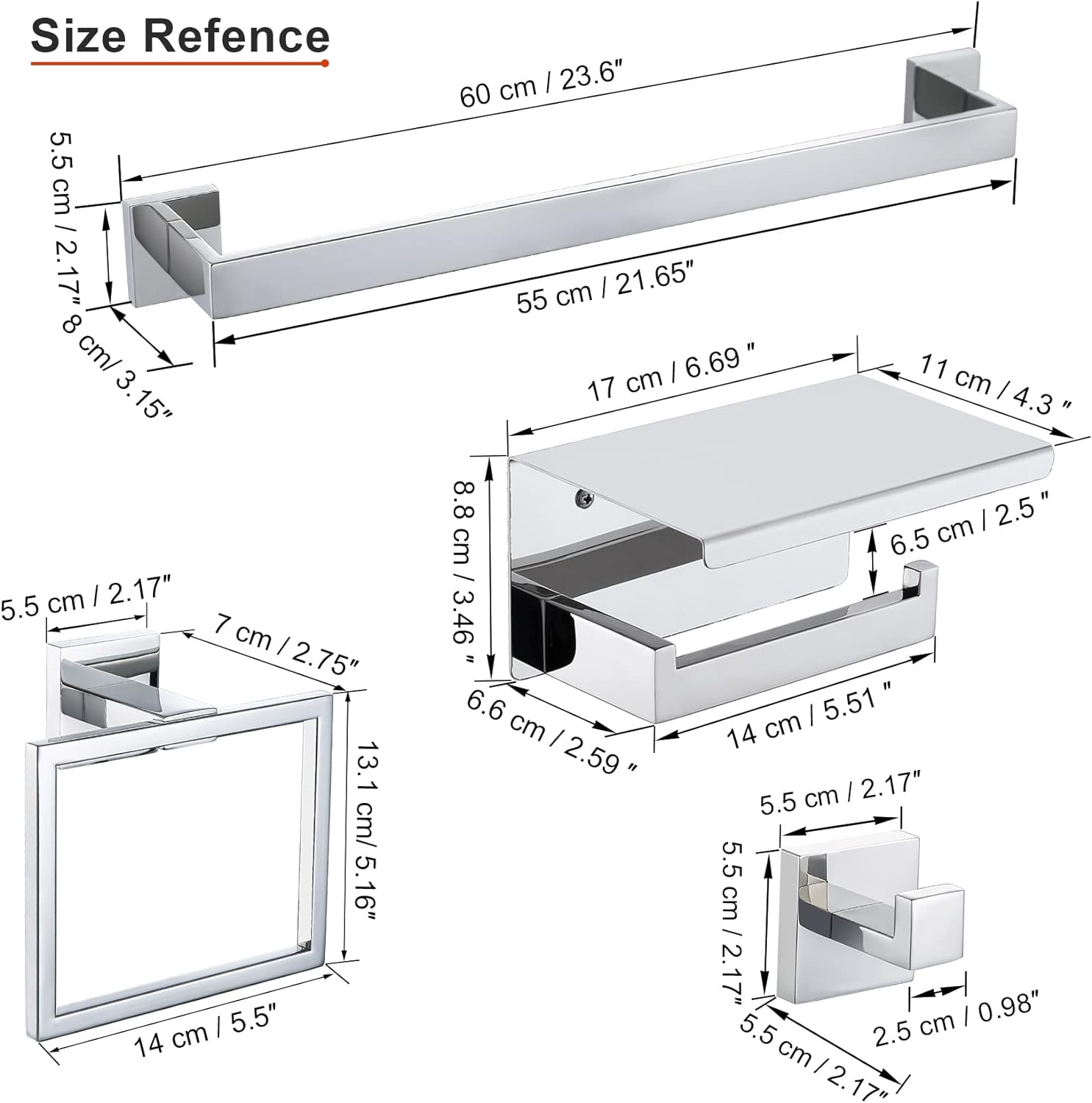 4-Piece Bathroom Hardware Set Chrome Bath Towel Bar Holder Sets Wall Mounted Stainless Steel Square Bathroom Accessory Kit, Polished Chrome 23.6 Inch