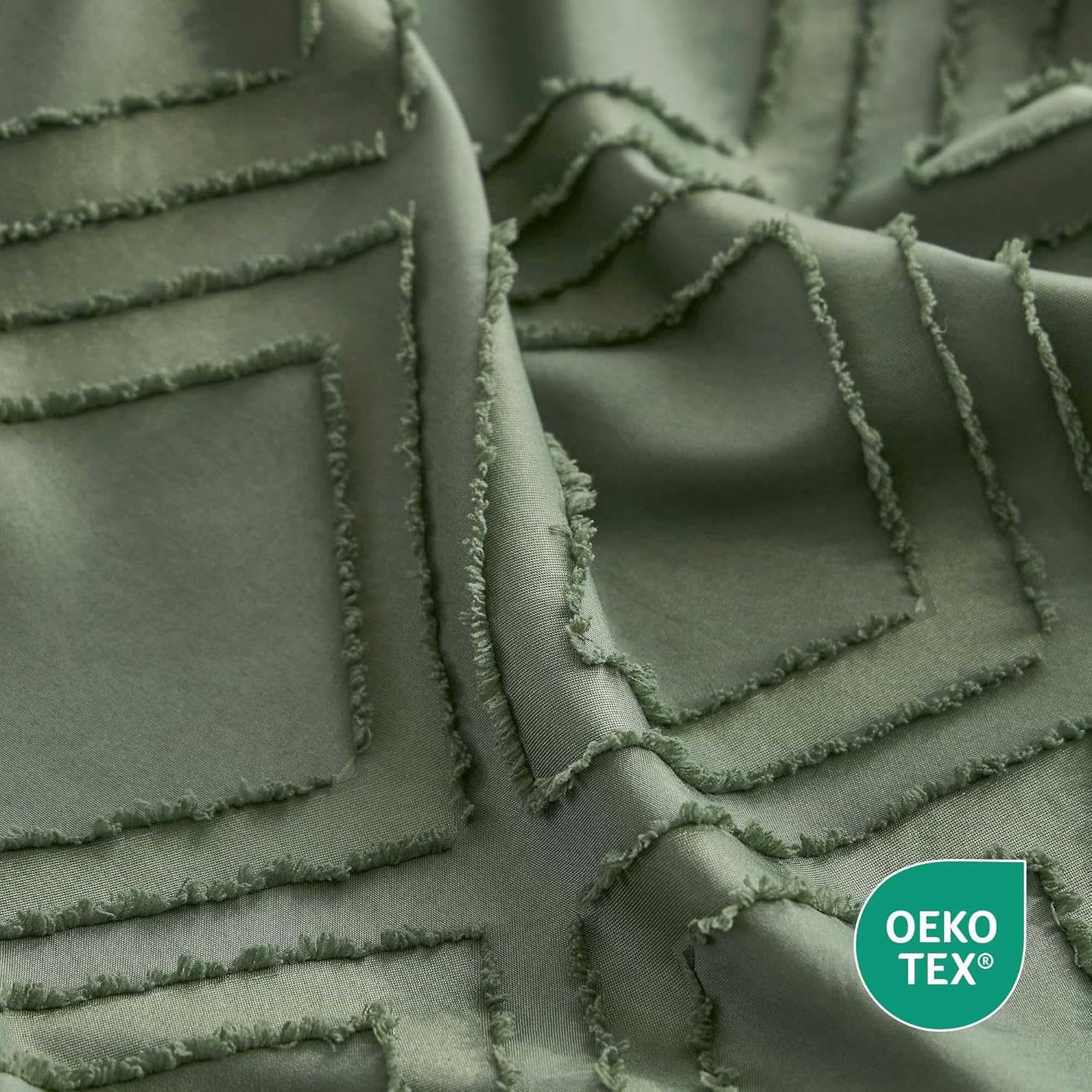 JELLYMONI Duvet Cover Twin Size Green - 3PCS Boho Duvet Cover Set Plaid Polyester Tufted Bohemian Jacquard Knit Textured Comforter Cover 68×90in Rhombic Geometric Pattern Corner Ties & Zipper