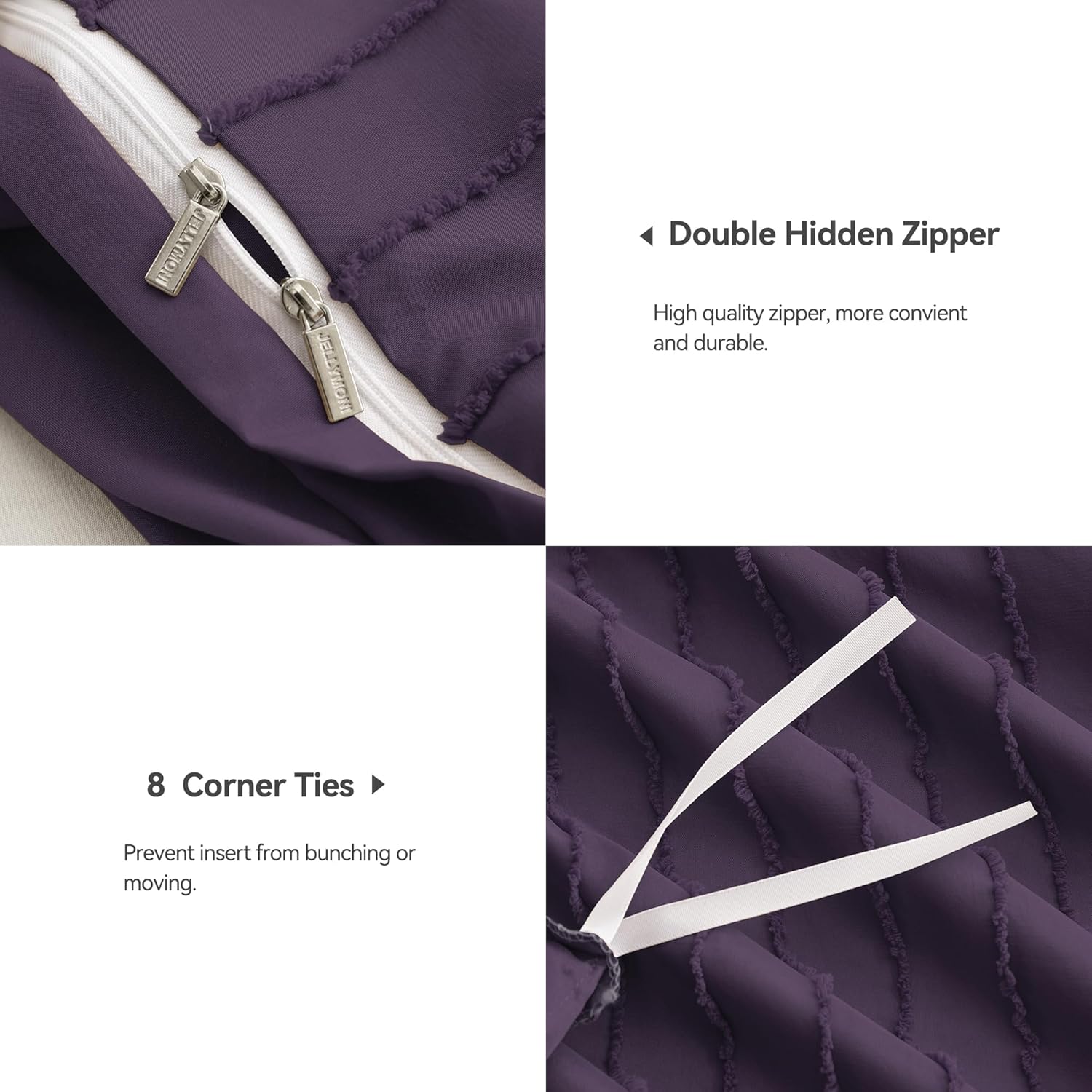 JELLYMONI Duvet Cover Twin Size Purple - 3PCS Boho Striped Duvet Cover Set Polyester Tufted Bohemian Textured Comforter Cover 68×90in with Corner Ties & Zipper and 2 Pillowcases
