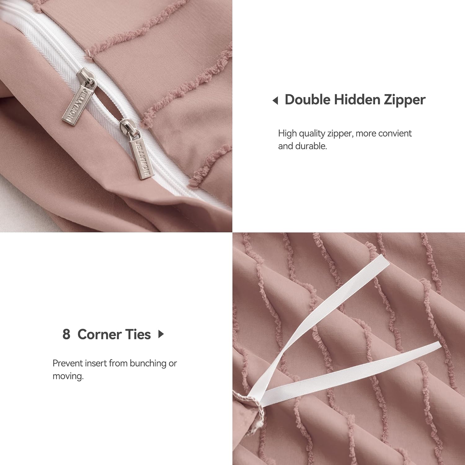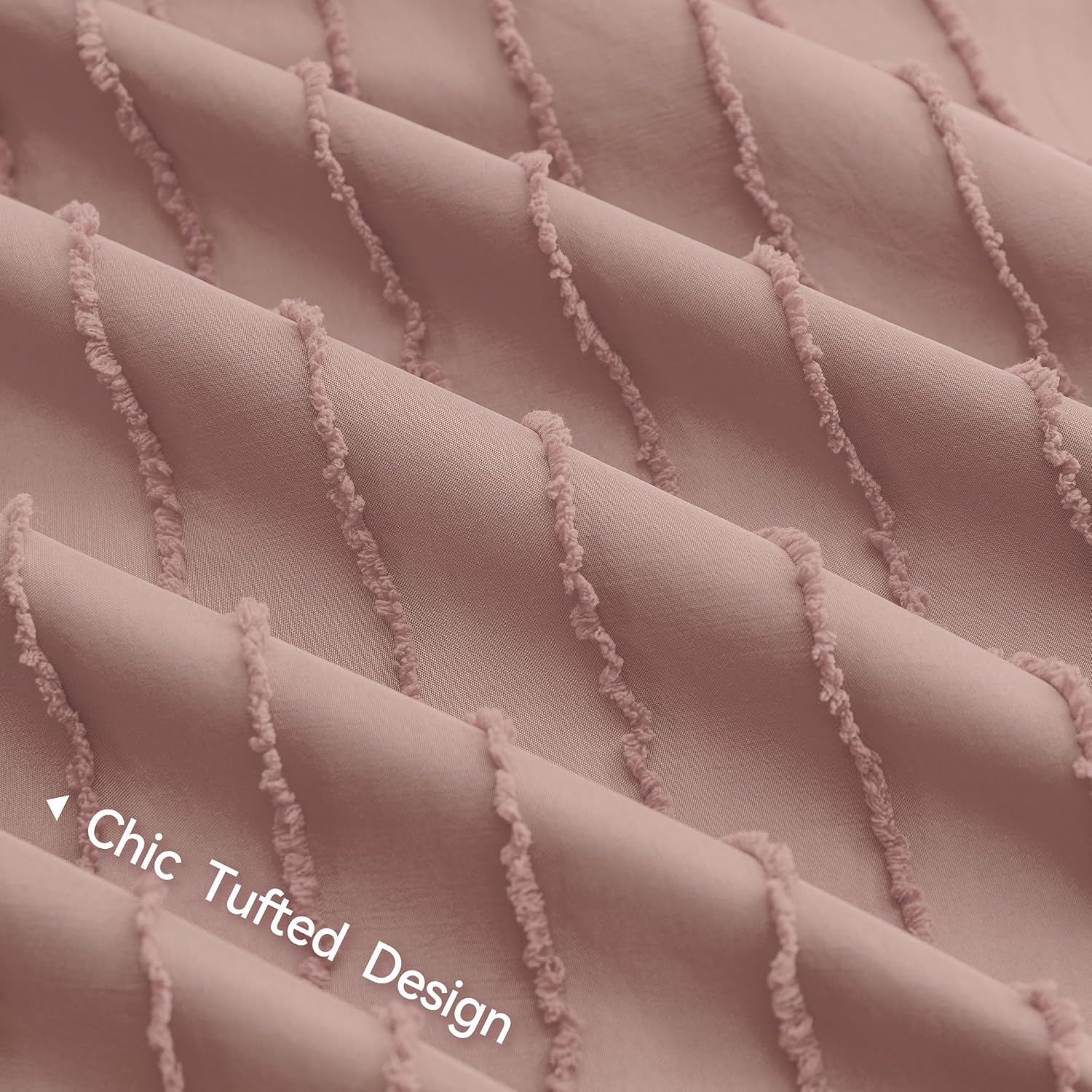 JELLYMONI Duvet Cover Full Size Smokey Pink - 3PCS Boho Striped Duvet Cover Set Polyester Tufted Bohemian Textured Comforter Cover 80×90in with Corner Ties & Zipper and 2 Pillowcases