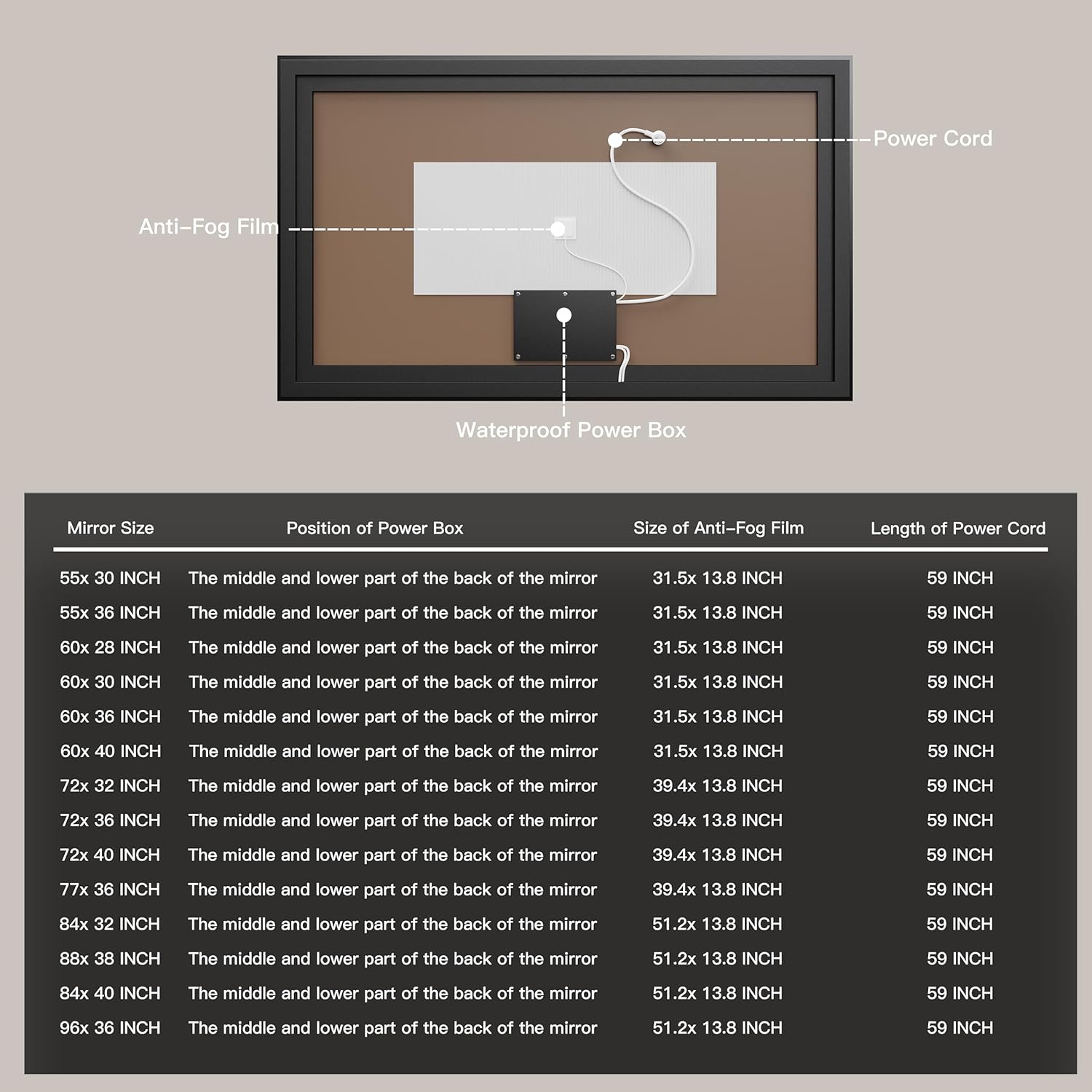 - 【Easy to Install, Plug-in/Hardwired】Our Mirror is packed with all mounting hardware, which is easy to install. The two sturdy wall brackets on the back of the mirror make sure the mirror hangs securely on wall. The mirror can be powered by either wiring it directly to electrical cables in the home or plugging it into an electrical outlet.
