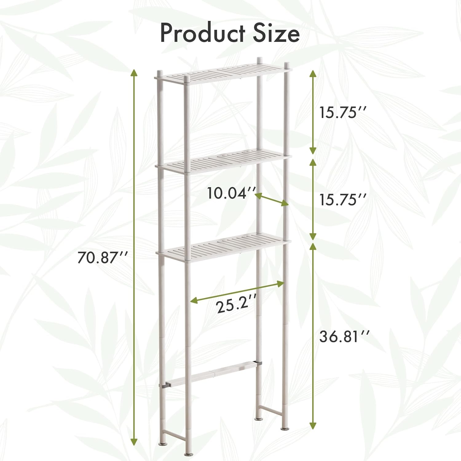 - Suitable size: The toilet storage is 25.2 x 10 x 70.87 inches. The bottom shelf is 37.5" from the ground, so it has enough space to lift the toilet cover and is suitable for most toilets. Adjustable bottom bar avoids toilet water valve.