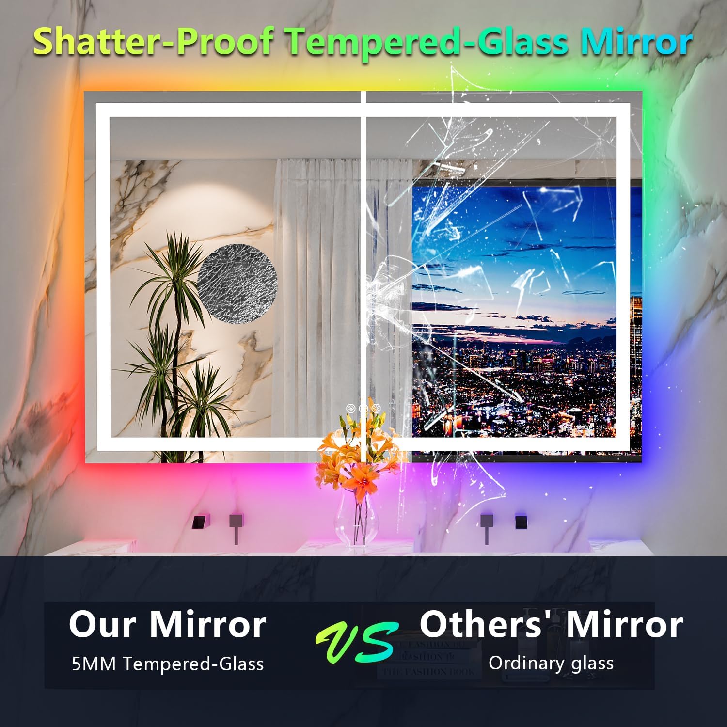 60x40 Inch RGB LED Bathroom Mirror Front Light and RGB Backlit Lighted Vanity Mirror for Bathroom Wall Mounted Dimmable Anti Fog Memory Shatter-Proof IP54 Waterproof Horizontal/Vertical