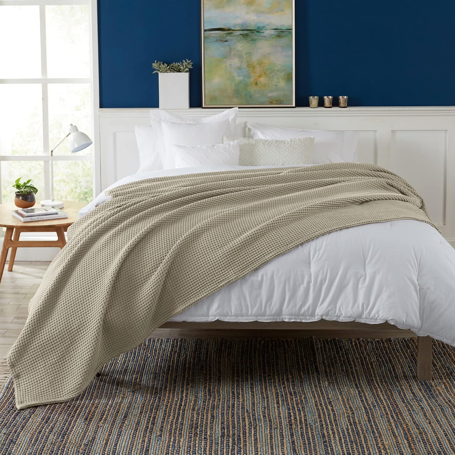 100% Cotton Waffle Weave Bed Blanket | Soft, Breathable, and Lightweight Blanket for All-Season | Perfect for Layering | Brielle Collection (King, Linen)