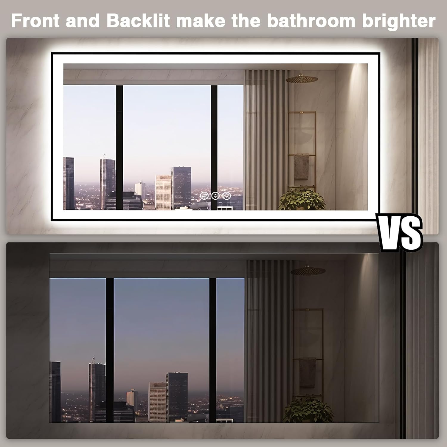 - [Incredible Brightness] Front and backlit designs illuminate your bathroom perfectly for makeup application, shaving, and grooming. You can choose from 3 color temperatures (ranging from 3000K warm light to 6000K cool daylight) and step-less dimming (from 10% to 100%) with higher CRI (90+).