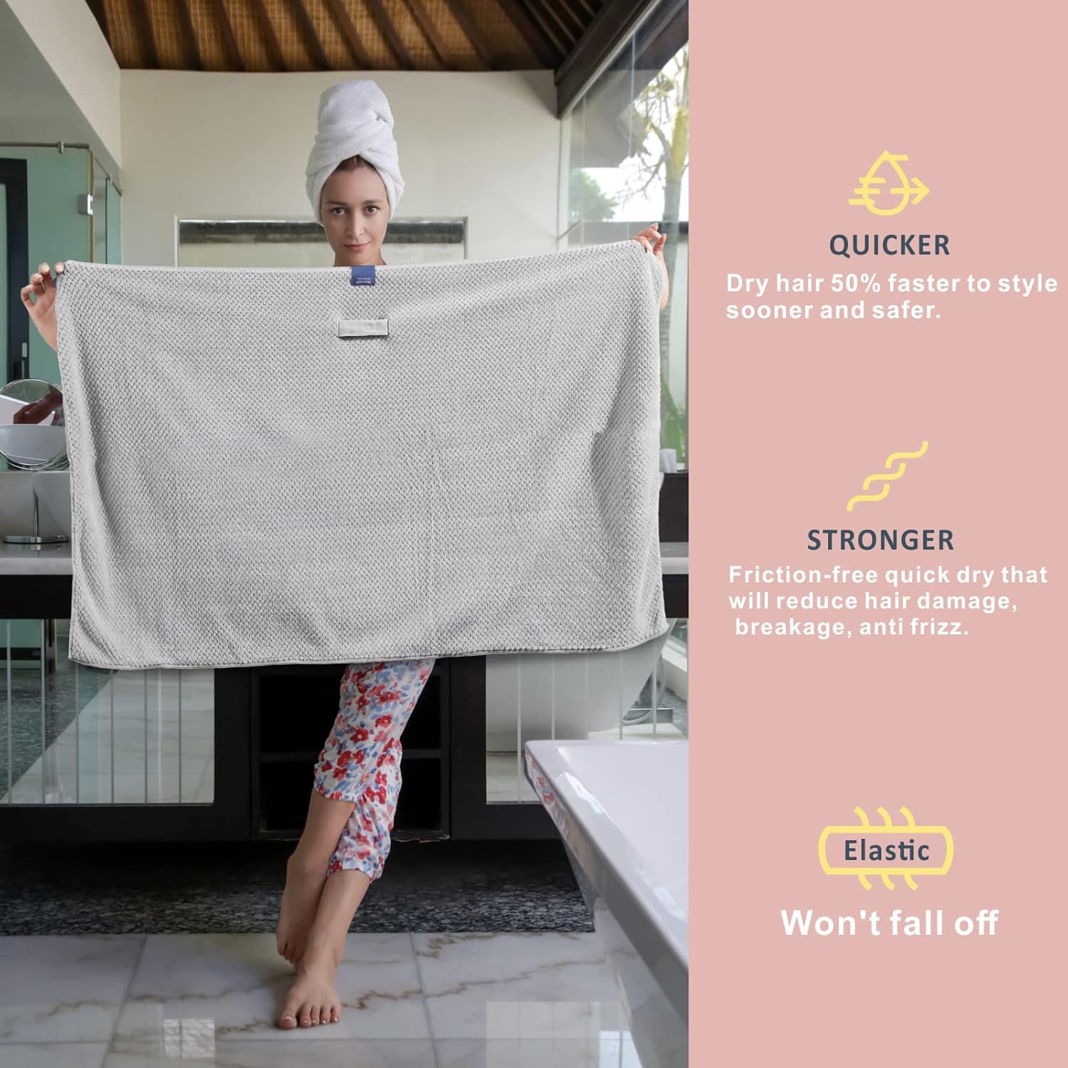 - HEALTHIER STRONGER HAIR - Drying with our high quality extra long microfiber hair towel, leaves damaged hair 3x stronger than using a traditional towel and 5x stronger than speed drying with a blow dryer. Get smoother, shinier, enjoy friction-free quick dry that will reduce hair damage, breakage, anti frizz.