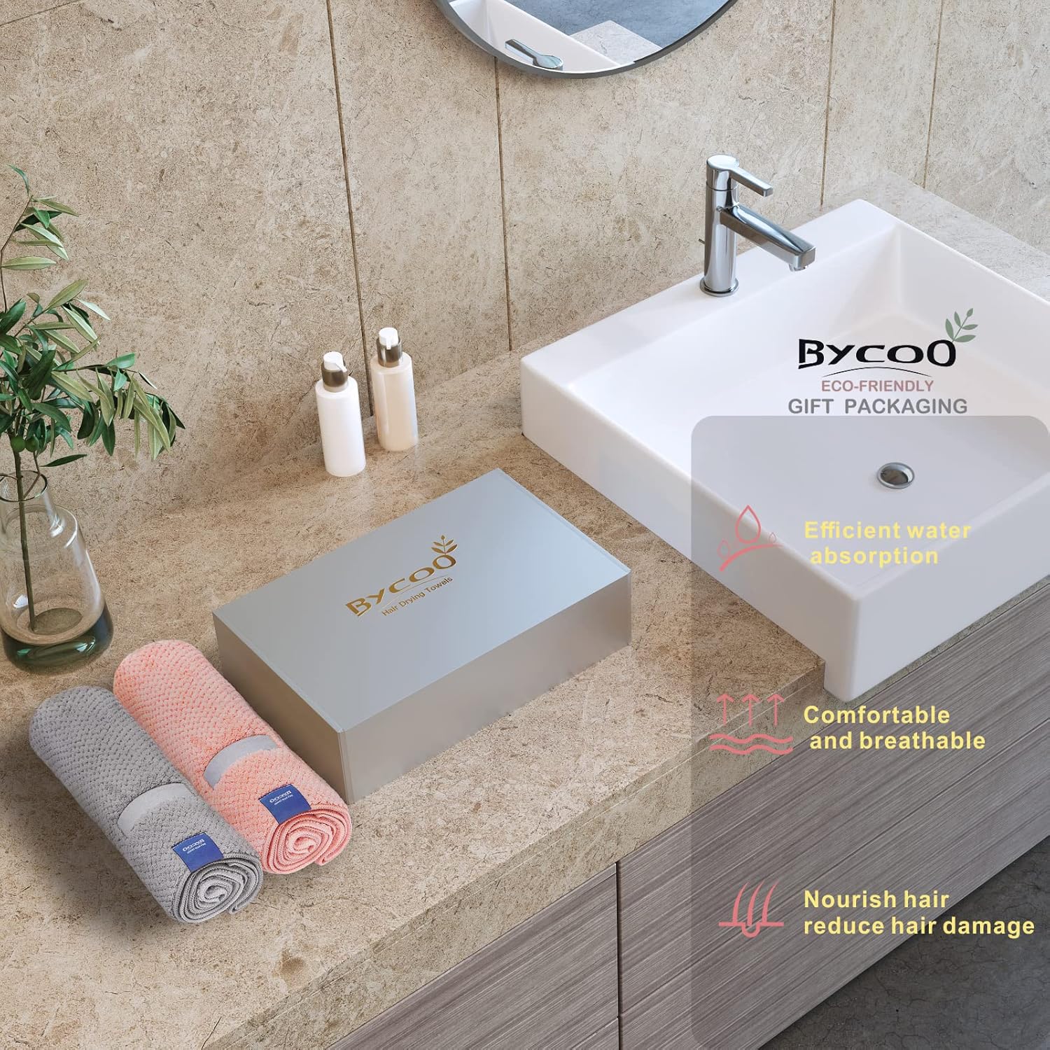 - FAMILY FRIENDLY - Our microfiber materials have a longer life, less pollution, less consumption, and less waste.Suitable for family travel, gym, yoga, camping, spa. Wrap your little ones with a BYCOO towel after a bath, shower, or beach time. Give our microfiber hair towels a gift for your beloved ones, for your wife, mom, child, friends, yourself.