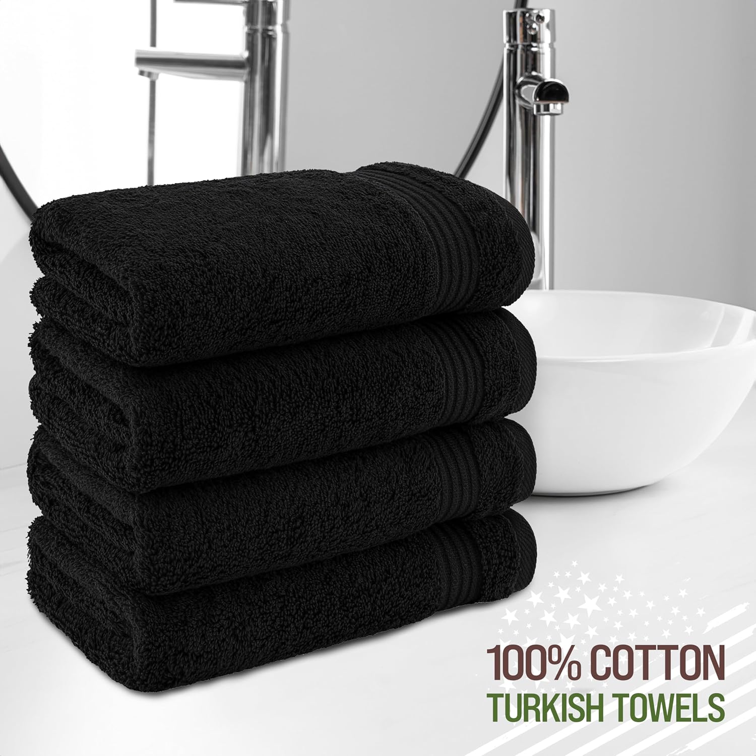 American Veteran Towel, Hand Towels for Bathroom Set of 4, 100% Cotton Turkish Hand Towel Sets, Soft Hand Face Towels, Black Hand Towels