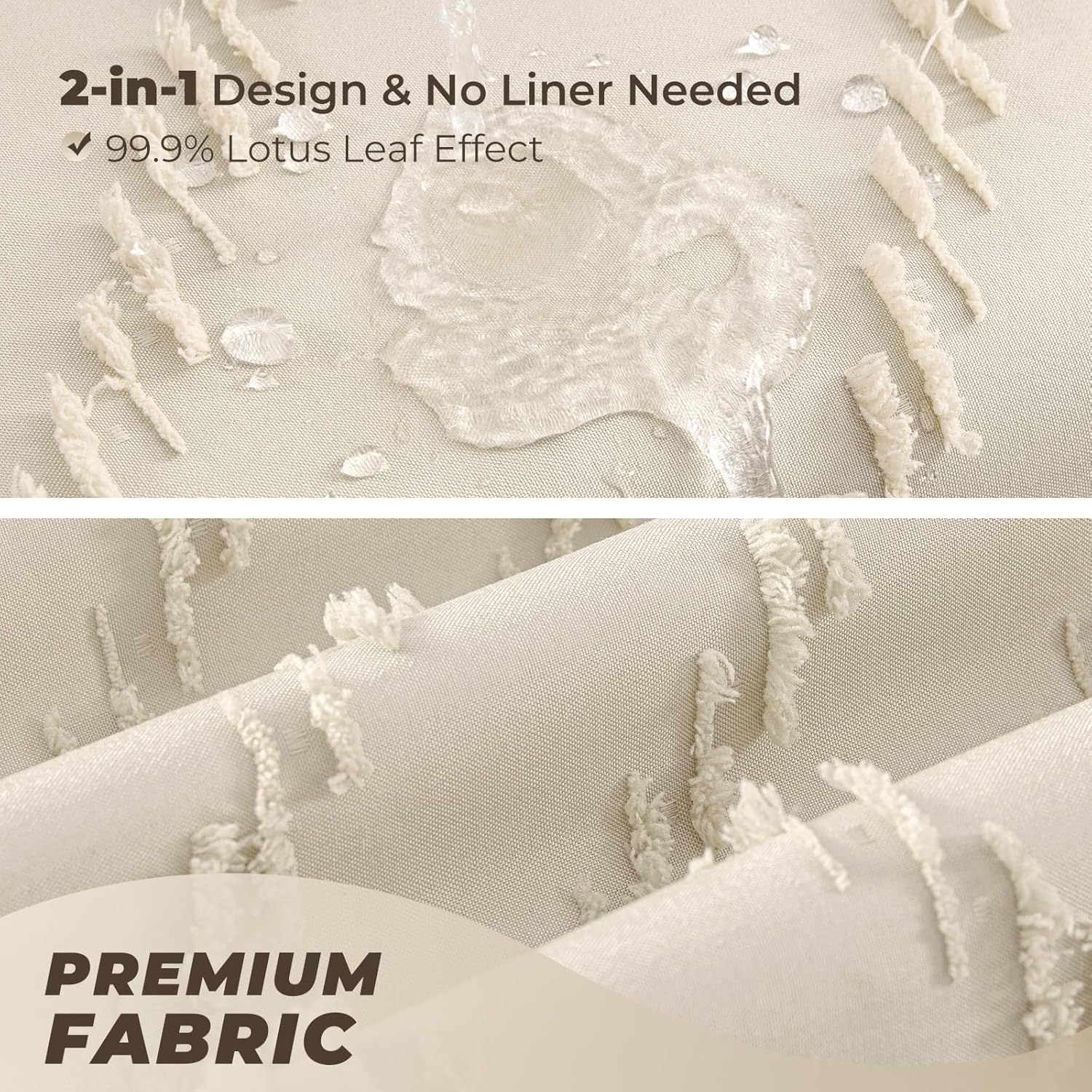 - 【Extra-Long 84-Inch Beige Fabric Shower Curtain with Boho Tufted Chevron Stripes】Designed for bathrooms that require extended height, this 84-inch extra-long shower curtain showcases elegant tufted chevron stripes. The neutral beige tone blends effortlessly with modern farmhouse, boho, contemporary, and shabby chic styles. Ideal for tall showers or bathrooms with high ceilings, it brings a warm, sophisticated touch to your space.