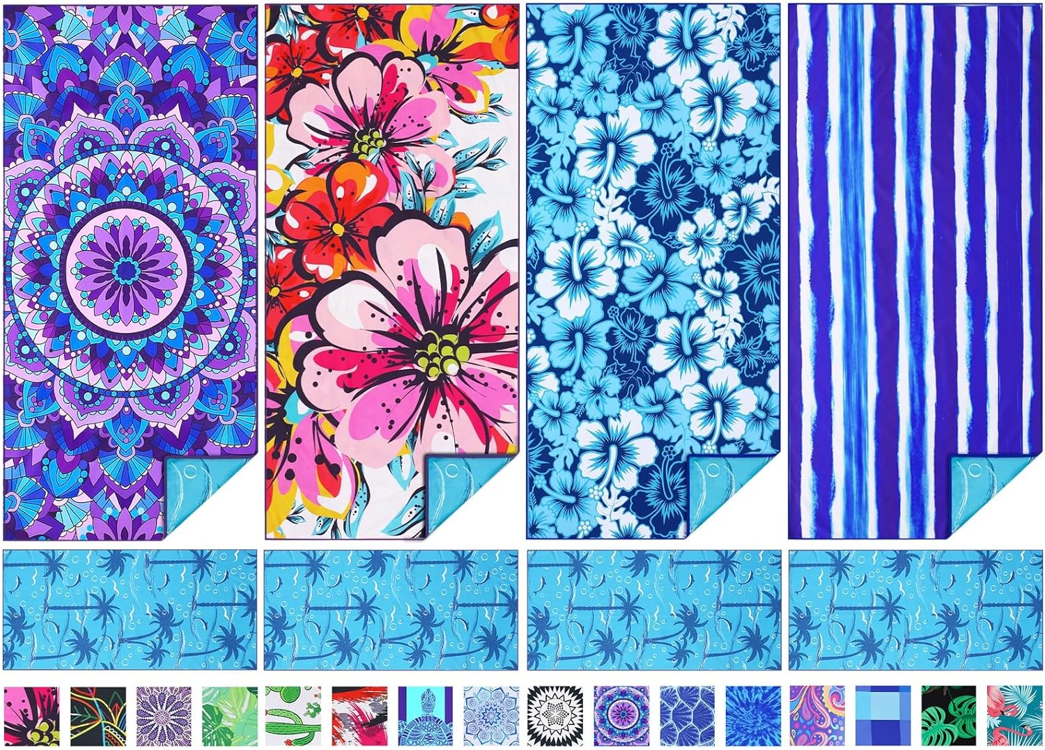 4 Pack Microfiber Thin Beach Towel Lightweight 71x32 Oversized Extra Large Sand Free Towels Quick Dry for Travel Pool Yoga Gym Sports Beach Accessories Vacation Essential Gift