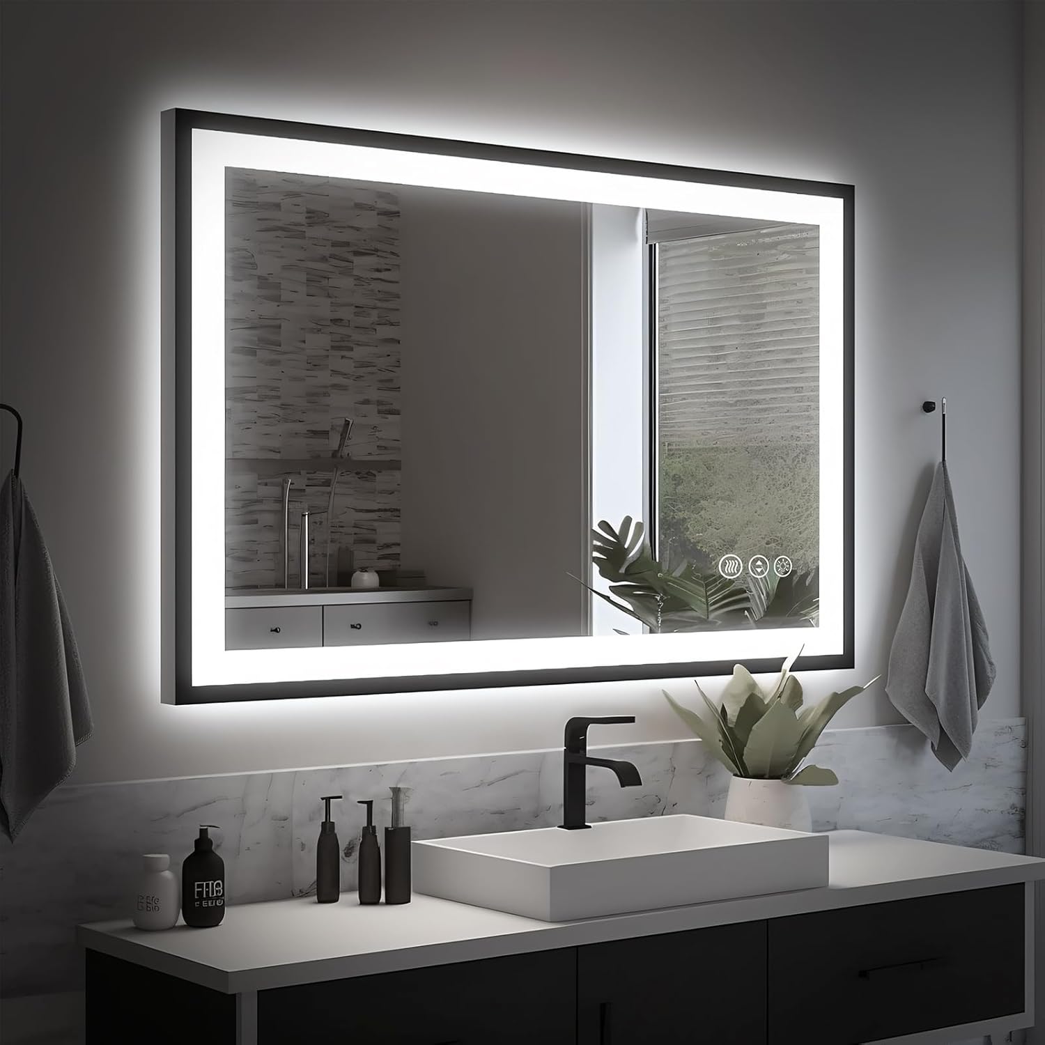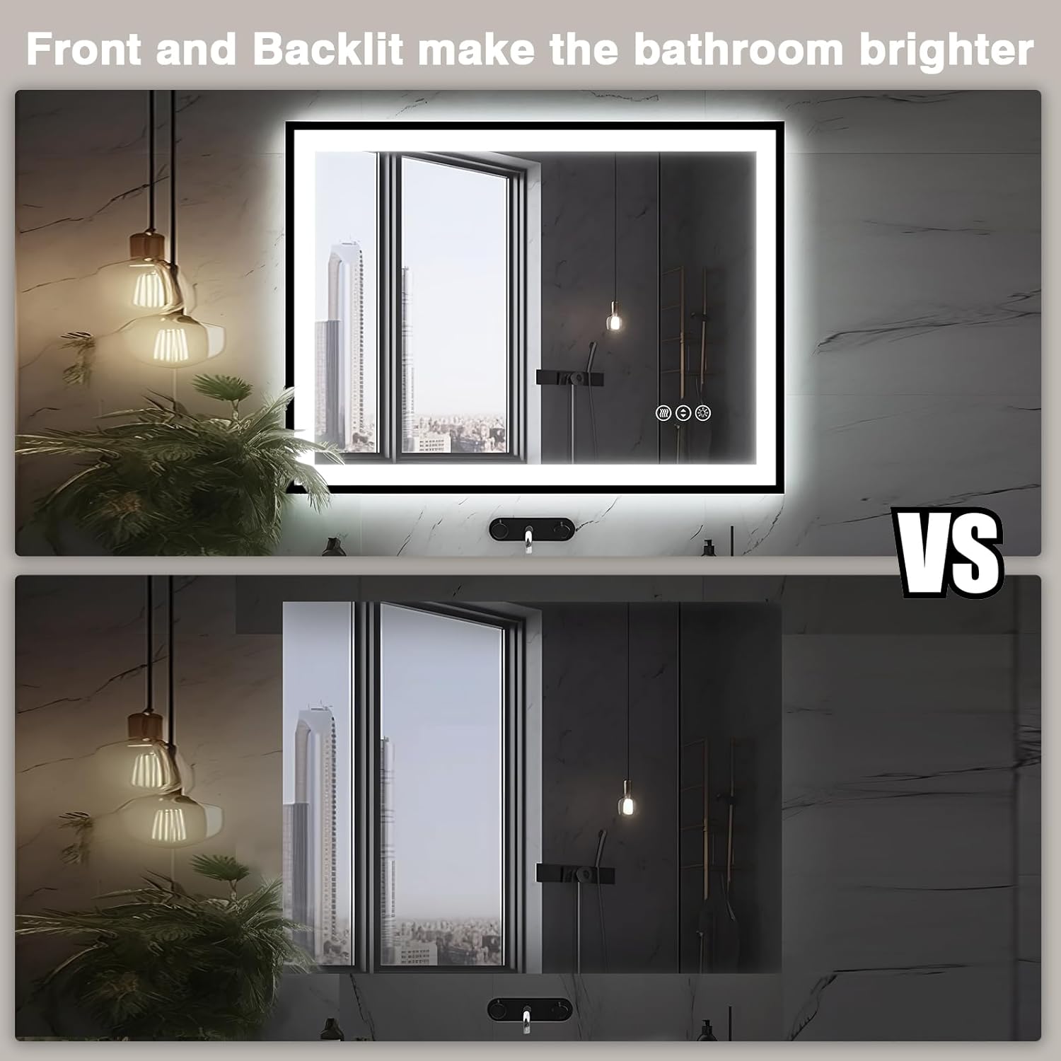 40x24 LED Bathroom Mirror - Black Aluminum Framed, Front and Backlit, Anti-Fog, Stepless Dimmable Lighted, 3 Colors Smart Vanity Mirror (Horizontal/Vertical)