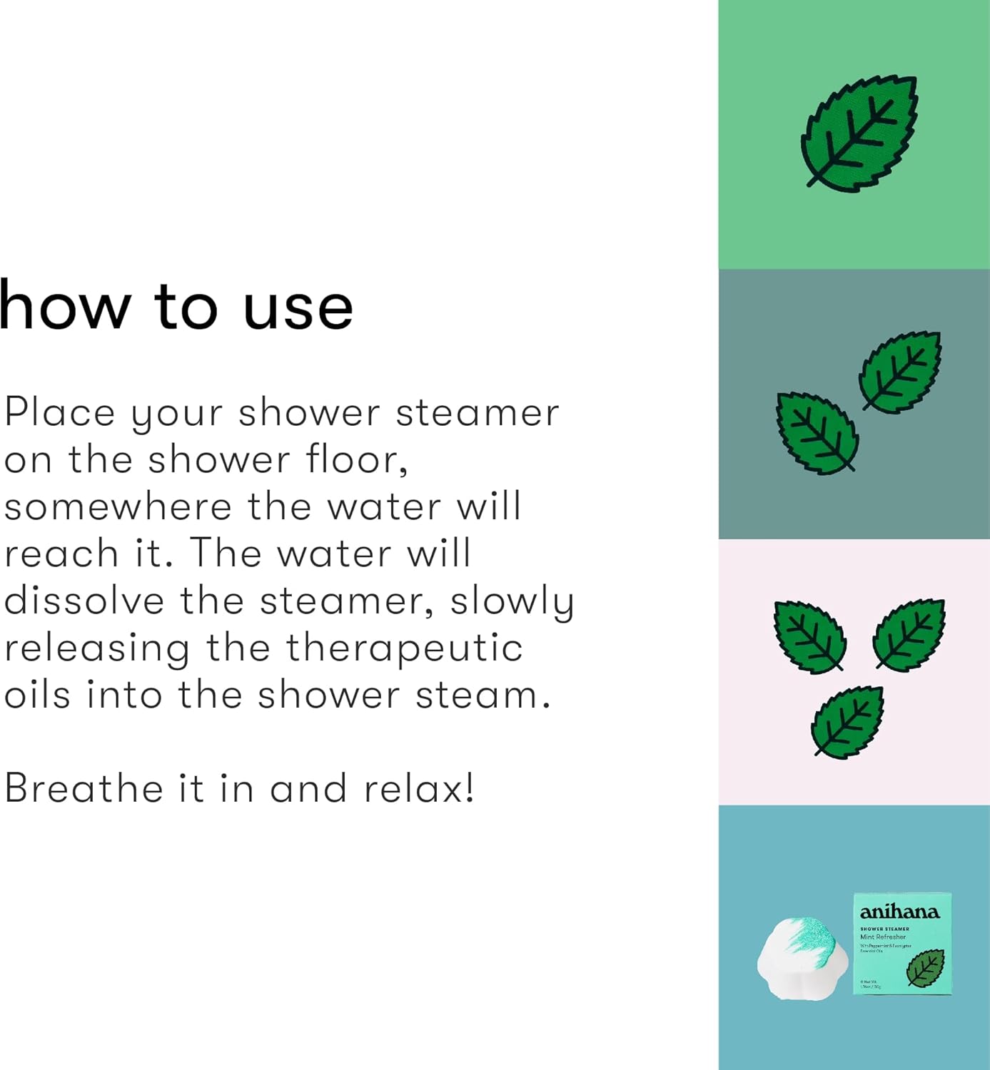 ANIHANA Shower Steamers 4 Pack with Peppermint and Eucalyptus Essential Oils, Paraben Free, Cruelty Free, Mint Refresher Scent, 1.76 oz Each