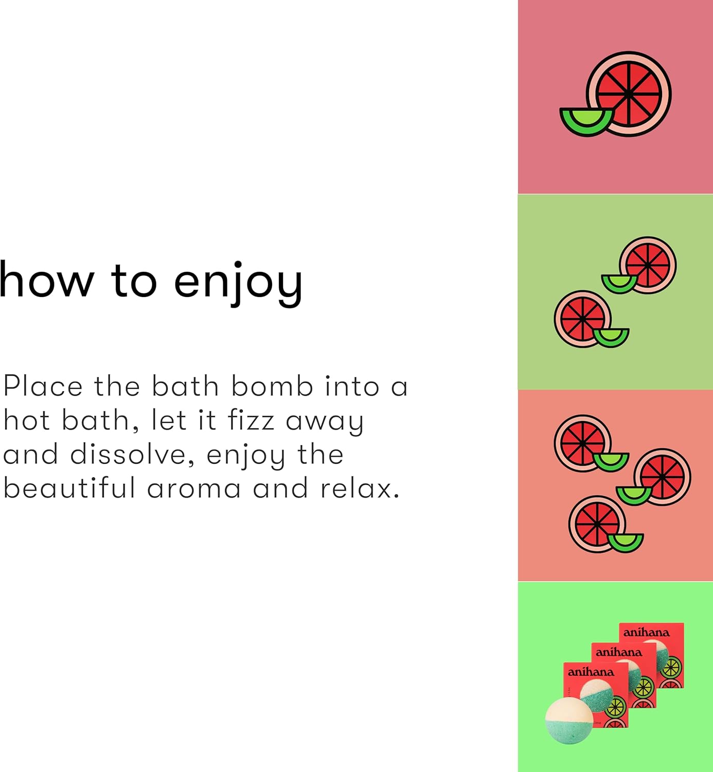 ANIHANA Bath Bombs with Coconut Oil, Paraben Free, Hand-Crafted Luxury Fizzers, Refreshing Grapefruit & Lime Scent, 6.3 oz Each, 3 Pack