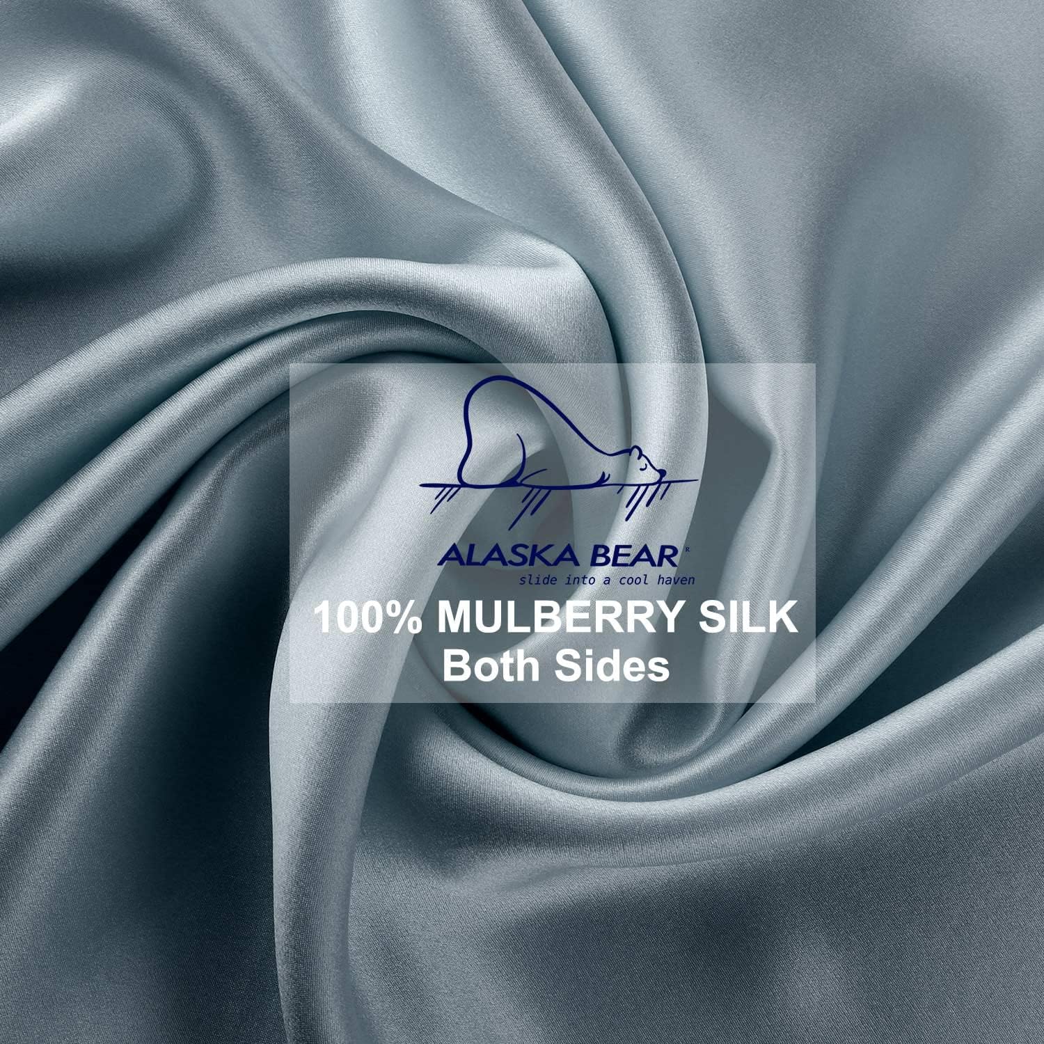 ALASKA BEAR Natural Silk Pillowcase, Hypoallergenic, 19 Momme, 600 Thread Count 100 Percent Mulberry Silk, Queen Size with Hidden Zipper(1, Haze Blue)