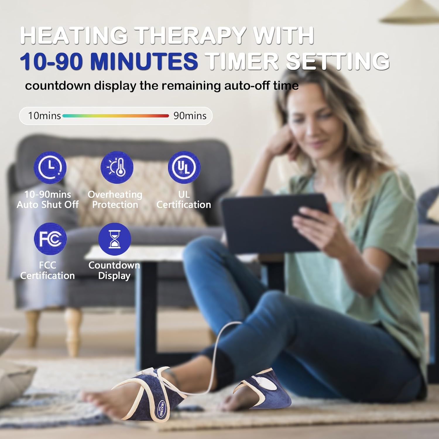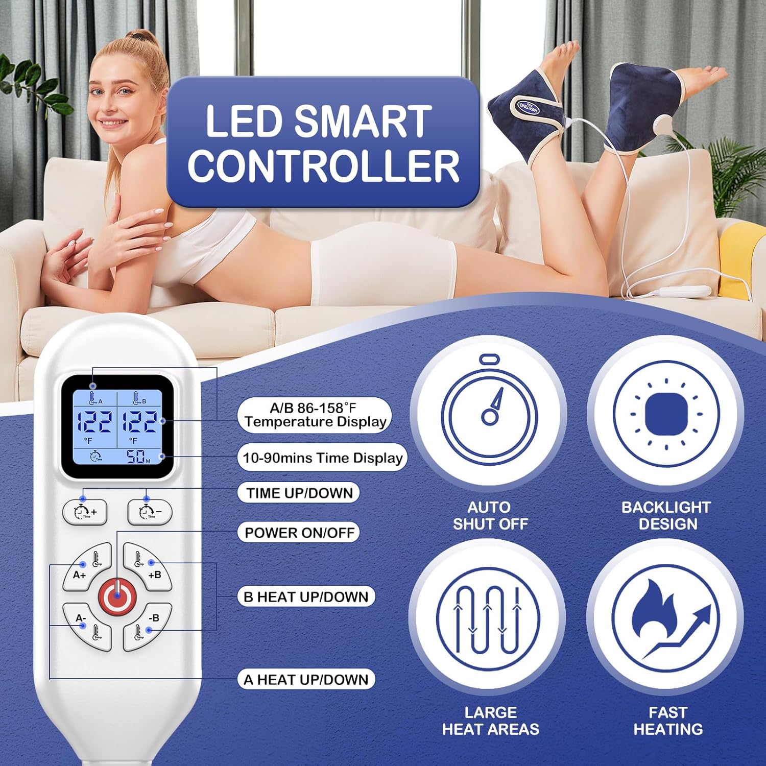- 【One Size Fits Most】 Secured with a strong magic tape system, the versatile ankle warmer easily adjusts to fit most men and women, you can distinguish the left and right foot according to the direction of the magic tape. Also features an extra-long 9.2ft power cord, long enough for your convenience. Compact and easy to carry, which allows you to enjoy it at home, office, or on a long trip.