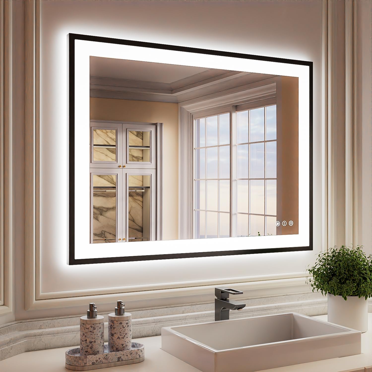 - 【Double Lights & Black Aluminum Frame】ISKM Framed LED Bathroom Mirror is more durable, elegant and modern. The front light and back light make your room brighter, making makeup, shaving and skin care more convenient. Made of high-quality aluminum alloy and thickened baking paint, the metal frame is lighter and sturdier, and better protects the mirror.