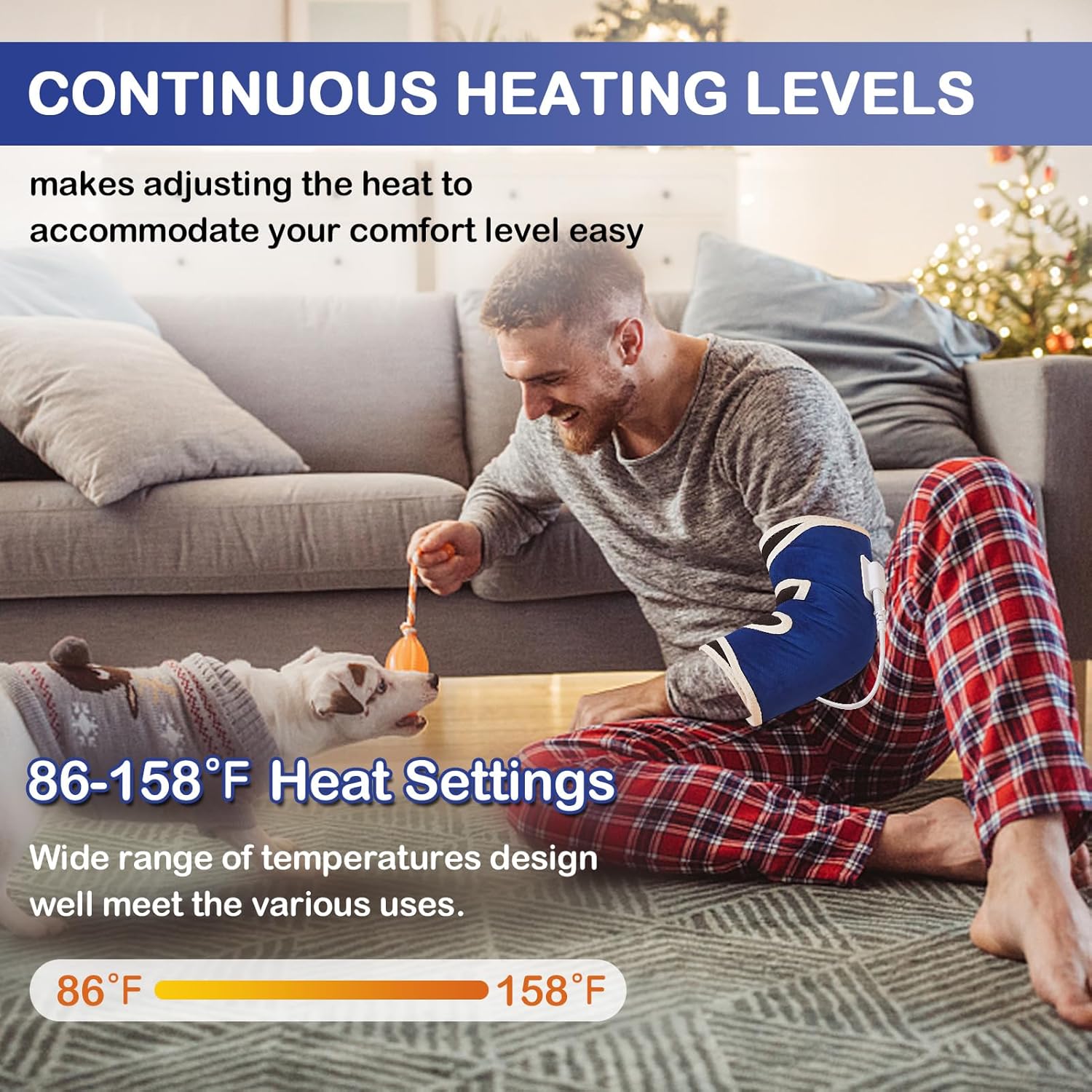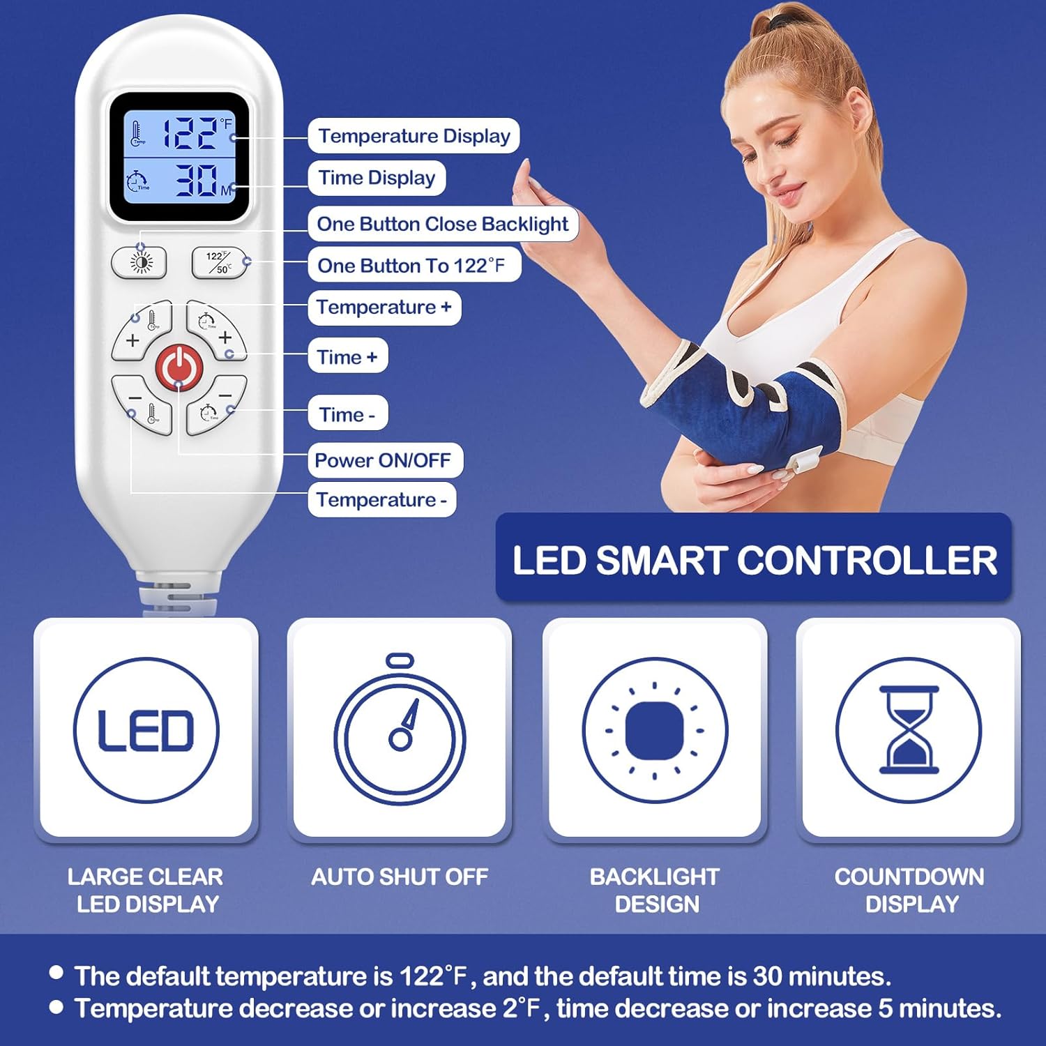 - Customized Time & Temperature: With advanced dense heating wire design, you can feel the heat within 30 seconds. 86℉ to 158℉ temperature and 10-90 minutes timer settings available, a lot of choices to get your best fitting temperature and time for tennis elbow hot therapy. A long 7.2-foot cord that you can go where you want easily.