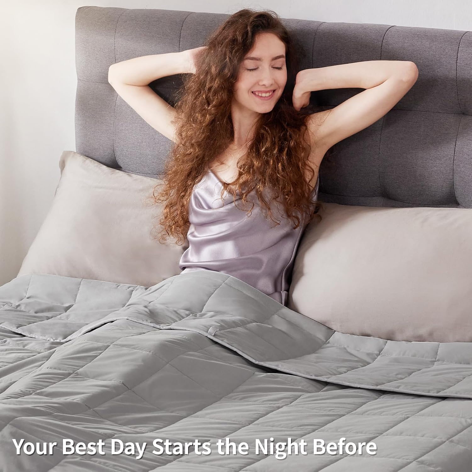 - HOW TO CHOOSE SIZE - Anfie recommend that you choose a weighted blanket that weigh 7% to 12% of your body weight.Weighted blanket 15-20 lbs is intended for individuals weighing about 150-200 lbs. If you are using a weighted blanket for the first time, we recommend that you choose a lighter weight.In order to concentrate gravity on the body, it is generally a little smaller than the corresponding size