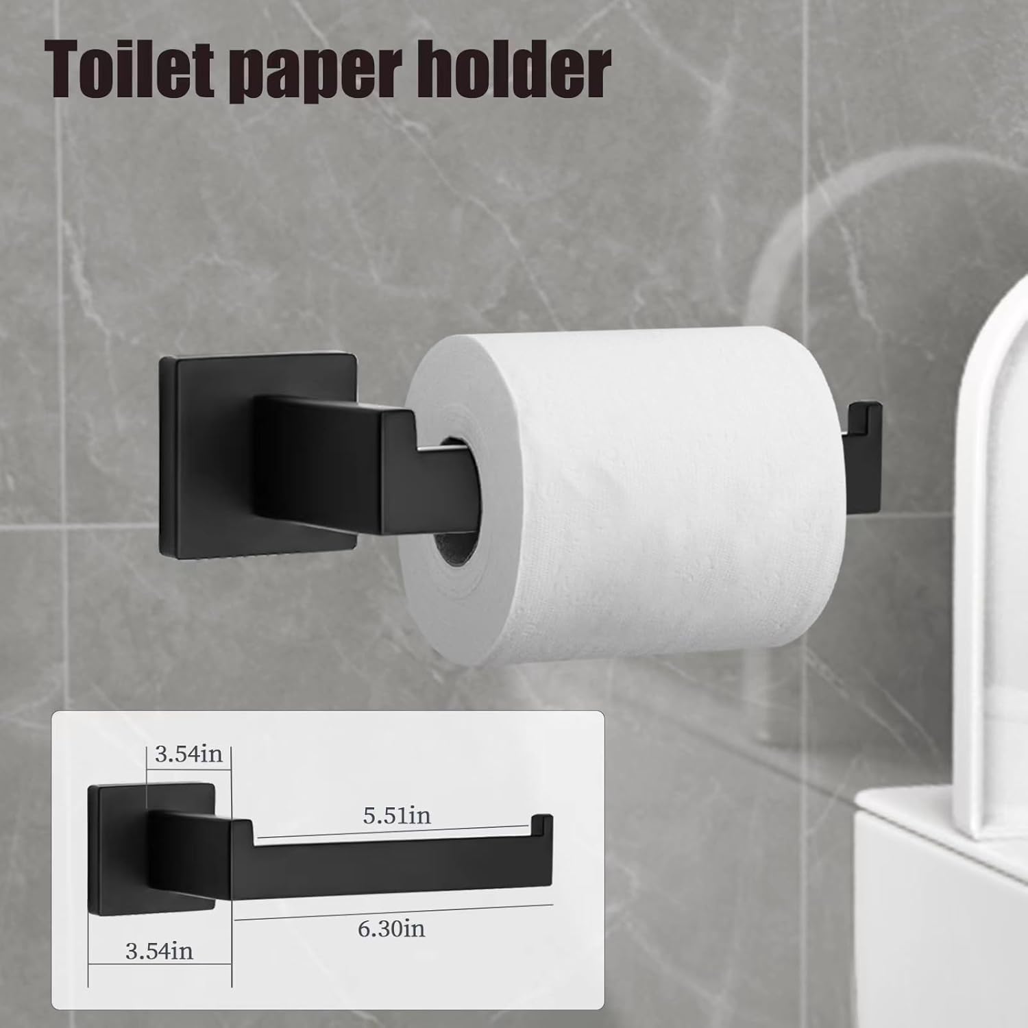 - 5-Piece Combination - The bathroom hardware set black include 1×16 Inch black towel bar, 1 × toilet paper holder , 1 × hand towel holder and 2 × PREMIUM towel hook. You don't need to take the time to select them one by one. This matte black bathroom accessories can meet all your needs in daily life that match nicely with your bathroom fixtures