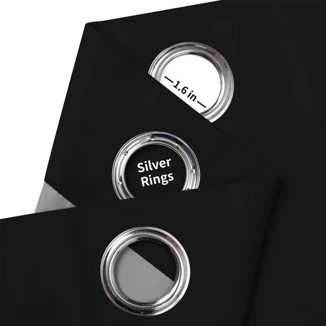 Joydeco Blackout Curtains - 96 Inch Long, Grommet Solid Black Curtains for Living Room & Bedroom, 2 Panels