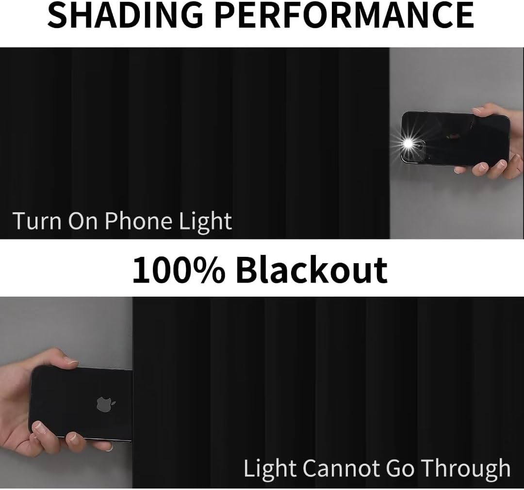 - 【Total Blackout】Joydeco curtains are a high-quality curtain with 100% blackout property. It adopts advanced blackout materials and production techniques, which can completely block external light penetration, providing excellent light control and privacy protection for you. Whether it is the intense sunlight during the day or the busy street lights, Joydeco curtains can effectively shield them, creating a dark, comfortable, and relaxing space.