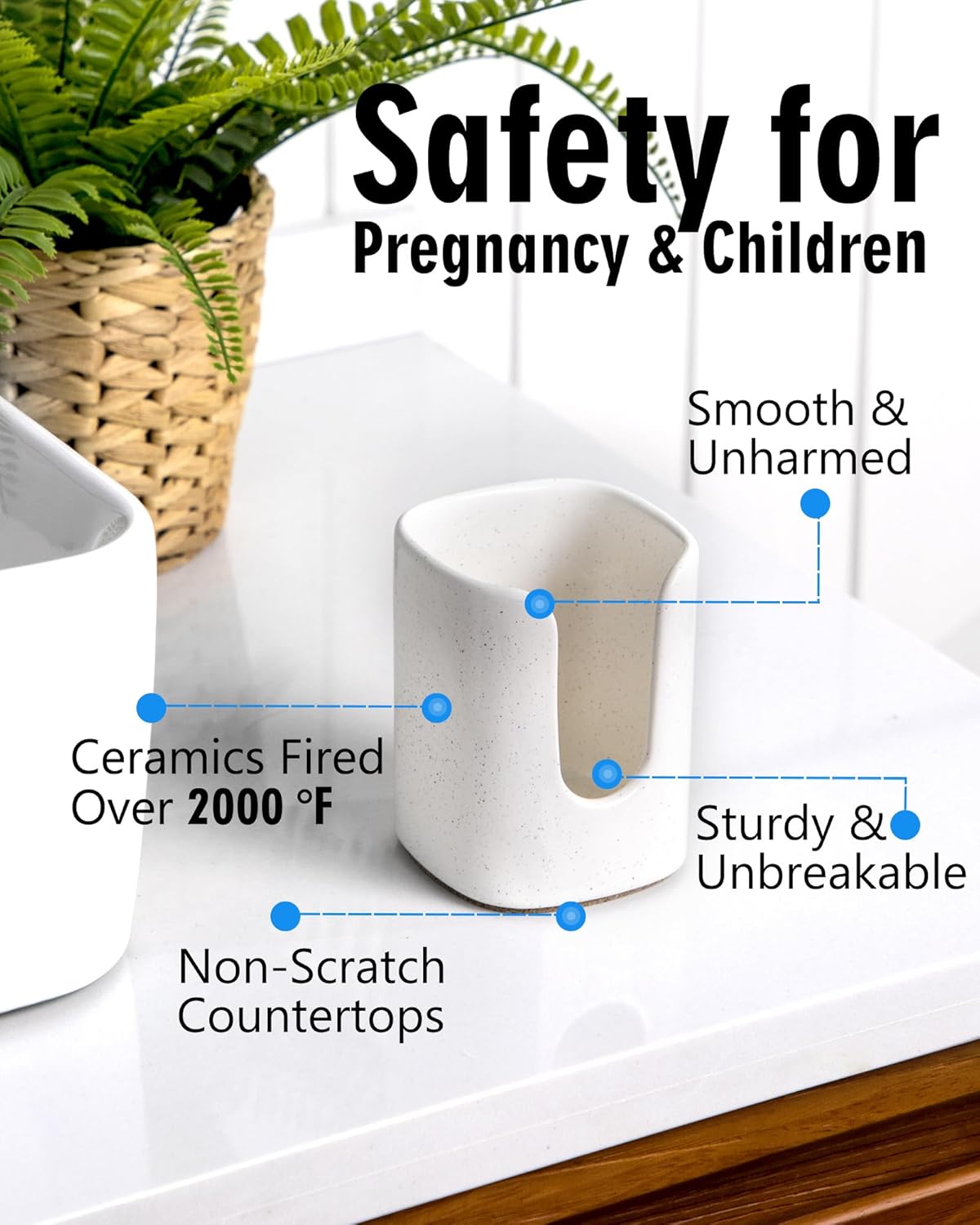 5 oz Square Ceramic Bathroom Cup Dispenser for Kids and Pregnancy - Disposable Paper Cup Holder for Mouthwash Cups on Bathroom Vanity Countertop (1 Pack, Off- White)