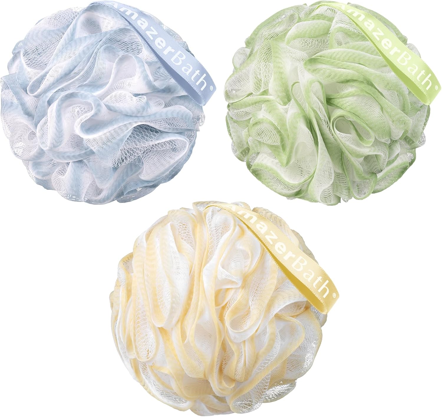 AmazerBath Loofah Sponge, Shower Loofah 60g/PCS - Body Scrubber Loofa Set of 3 Tranquil Tints Trio, Bath Sponge for Men and Women